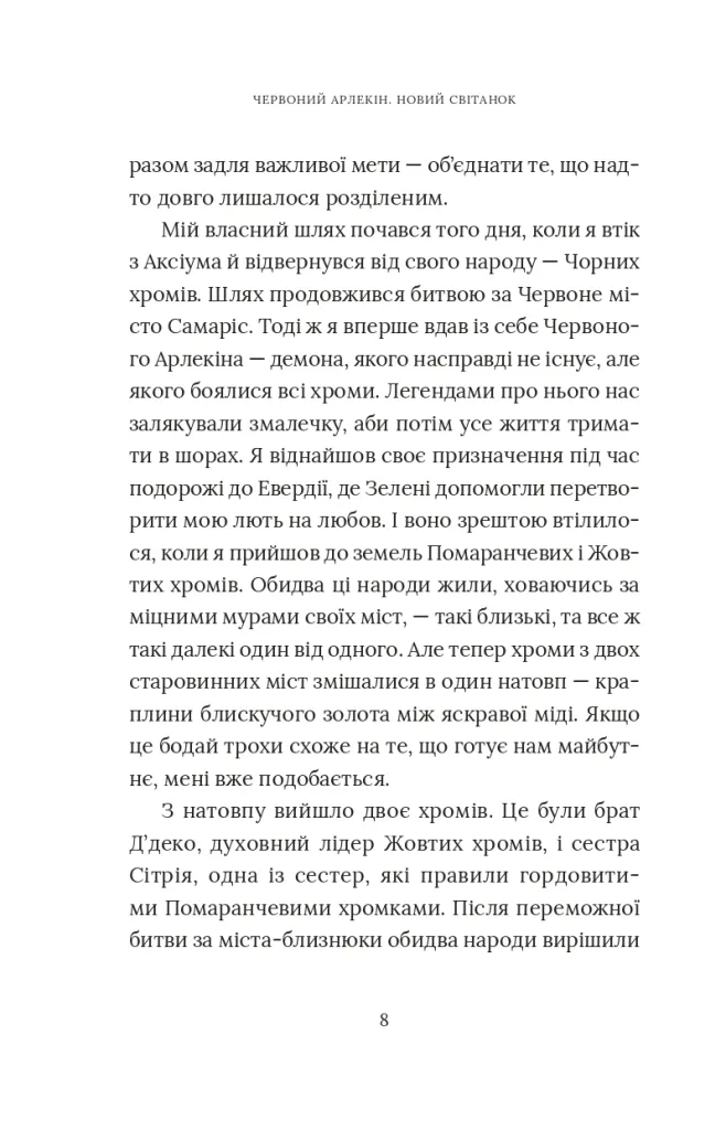 Почалася війна, що має покласти край усім війнам. Заради спільної перемоги хромам різних кольорів доведеться об’єднатися та прийняти відмінності одне одного. Перед вирішальною битвою Ашева прагне заручитися підтримкою Фіолетового народу, тож разом з друзями вирушає до чарівного краю метеликів — Папілії. Там на Цестію і Ашеву чекають не лише неймовірні краєвиди та знайомство з Фіолетовим Монархом, а й справжнє випробування їхніхпочуттів. Кольори й пахощі, радість і горе, любов і смерть. Усе змішалось у божевільному танку, з якого народиться новий світанок.