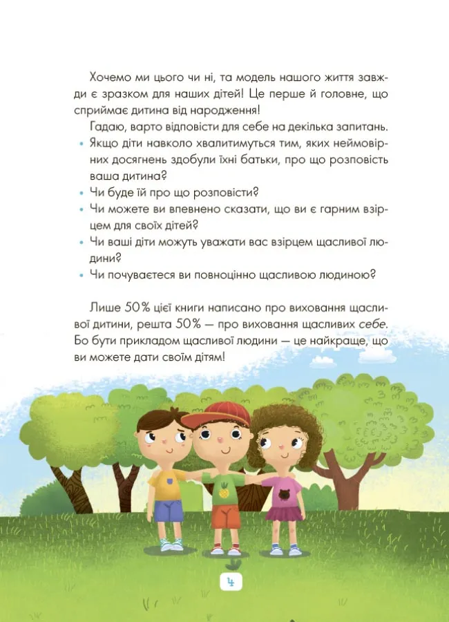 Ефект від цієї книги вдвічі кращий, бо вона впливає і на батьків, і на дитину водночас! Адже приклад того, як стати і бути щасливою людиною, — це найкраще, що ви можете дати своїм дітям!