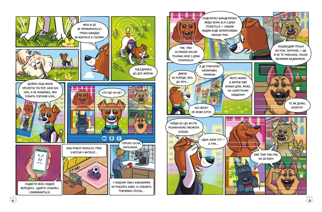 Пригоди пса Патрона тривають! Відважний пес Патрон і його друзі знову на захисті людства! Цього разу вони мають подолати повстання техніки та знешкодити її небезпечного ватажка — Великого Т! Патрон, його нова подружка Ягідка, інші собаки та робот Григорій першими зрозуміли: техніка в місті вийшла з-під контролю, і цим процесом керує хтось небезпечний і непомітний. Чи вдасться героям повернутися до того, як сплине час? Чи зможуть вони пройти всі портали? Та чи можливо привести техніку до тями й запобігти її надмірному використанню? І хоча цей комікс створений для дітей, він, безперечно, зацікавить усіх поціновувачів діяльності пса Патрона. Знайти, знешкодити, врятувати — нашим героям це не вперше. Загін під керівництвом Патрона йде рятувати реальний світ і потрапляє у світ віртуальний! Чи вдасться героям встигнути до того, як сплине час? Чи зможуть вони пройти всі портали й повернутися? Та чи можливо привести техніку до тями й запобігти її надмірному використанню? Про все це в нових неймовірних і дивовижних пригодах пса Патрона!