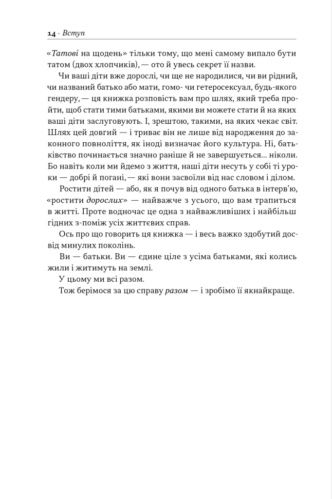 Ця книжка не схожа на посібники про те, як складати дитячий раціон чи адаптовуватися до садка. Дозовано — по сторінці на кожен день року — вона вибудовує шлях до тата, яким ви захочете стати. Того, хто буде для дитини взірцем і її найбільшим фаном, хто навчить її давати собі раду, визначати пріоритети, цінувати свій і ваш час. Хто заохотить дитину до читання, виховає людину, яка добре розуміє себе та інших, і яка знатиме, чого хоче. Раян Голідей зібрав у своїй книжці поради стоїків та історії батьківства видатних людей, дослідив вплив уважного виховання на синів, що стали героями війн, і доньок, які здобули Нобелівські премії. Ці приклади і власний досвід автора як тата двох синів перетворюють книжку на концентрат мудрості, формують глибинний зв’язок між батьками різних поколінь. Незалежно від того, дорослі ваші діти, малі чи ще не народилися, рідний ви тато чи названий, ця книжка стане незмінним супутником вашого батьківства, відкриє нові можливості для міцних і щасливих стосунків з тими, хто любить вас найбільше.