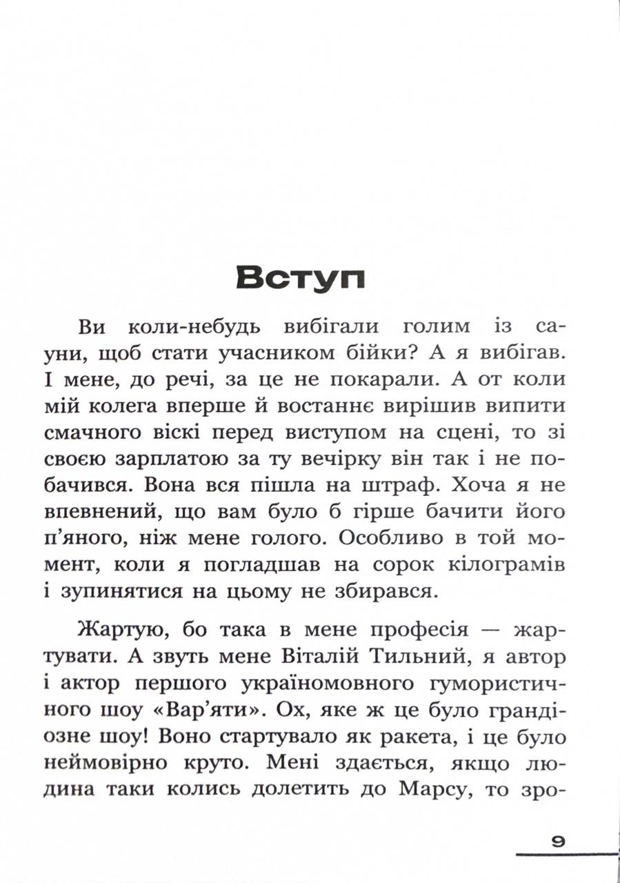 Без сенсацій, але з відвертими зізнаннями вар’ятівець Віталій Тильний розповідає в цих мемуарах історію першого україномовного гумор-шоу «Вар’яти», одним із засновників та постійних учасників якого він був. У книзі — про успіхи та стимули рухатися далі, про серйозне ставлення до гумору та наполегливу працю, про відпочинок і трудові будні, про дружбу й кар’єру та просто про життя. Для фанатів вар’яти шоу і тих, які хочуть дізнатися більше про його залаштунки, а також для всіх, хто звик іти по життю з гумором та робити все зі всієї сили.