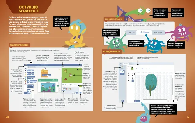 У цій книжці ти навчишся кодувати власні ігри за допомогою Scratch 3. Ти працюватимеш з різними блоками для створення коду. Ти також дізнаєшся як додавати об’єкти, які називаються спрайтами, та застосовувати код, аби вони виконували твої команди. Наприкінці кожного розділу є завдання. Вони допоможуть покращити рівень твоїх навичок!