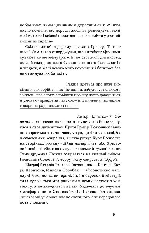 «І на мить не хотів би повернутися у своє дитинство» — часто казав Григір Тютюнник про своє життя. Однак повертався туди знову й знову, складаючи у своїх творах пазл з (авто)біографій маленьких персонажів, на долю яких випали тяжкі випробування: війна, радянський тоталітаризм, злидні, насильство…