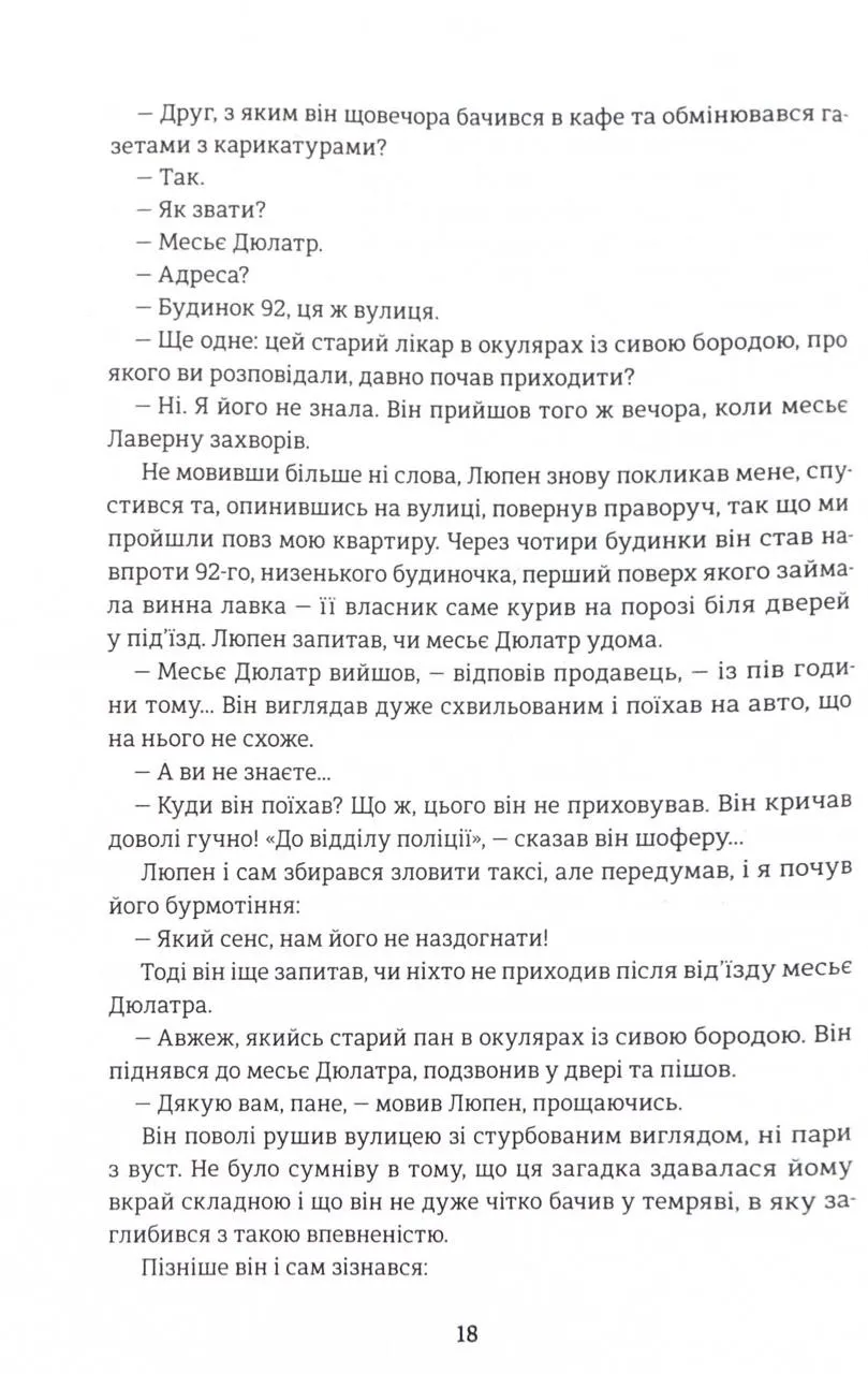 Ця книга стала частиною багатої спадщини Моріса Леблана і приваблює читачів своєю загадковістю та гумором, де кожне з дев’яти оповідань — невеликий шедевр кримінального жанру.