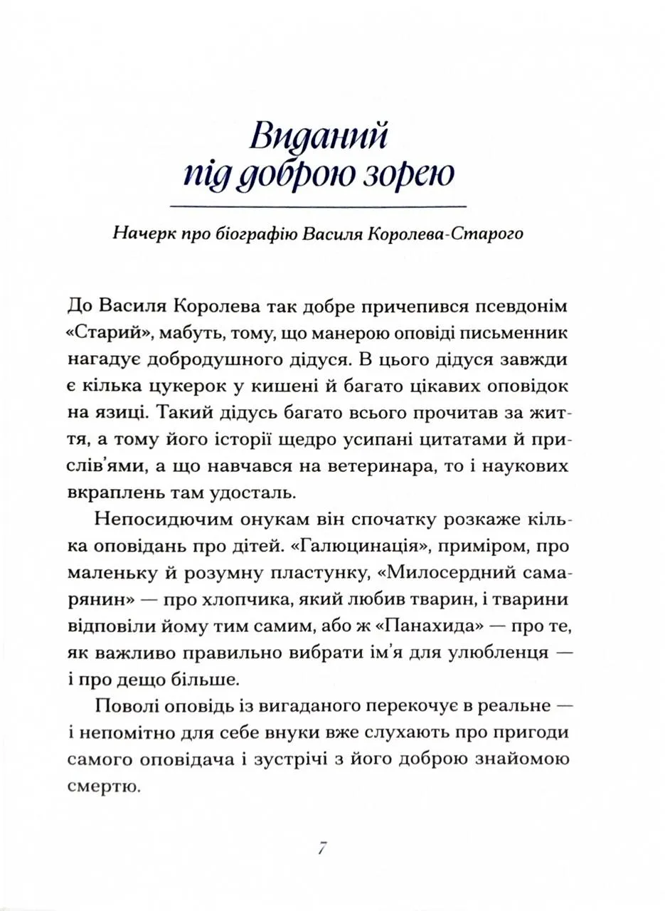 Ті, хто читав про маленьку Хуху-Моховинку, навряд чи знають, ким був її автор — Василь Королів-Старий. За своє насичене життя він устиг попрацювати і ветеринаром, і редактором, і малярем, і викладачем, і письменником. У пам’яті українців він тісно пов’язаний із творами для дітей, але за добрими казками про Нечисту силу захована багатогранна і непересічна душа, сповнена глибоких думок і любові до України.