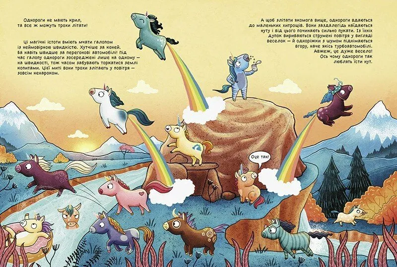 Усе про прекрасних однорогів в одній книжці. Як вони народжуються, у що полюбляють грати, чим харчуються, із ким товаришують, як розважаються... А ще — як улаштоване їхнє тіло і яким чином вони розпилюють блиск, чи вміють вони літати і хто може стати однорогом. Весела енциклопедія з неймовірно милими ілюстраціями — для справжніх шанувальників цих магічних істот.