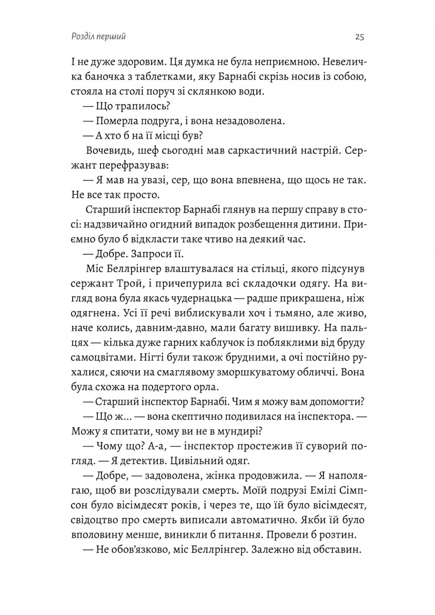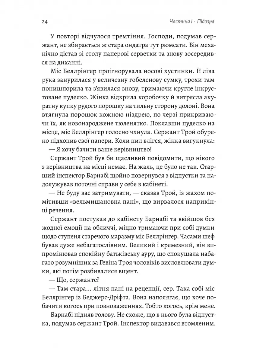Беджерс-Дріфт — тихе англійське село з вікарієм, місцевим незграбним лікарем і доброю старою вчителькою міс Сімпсон, яку одного ранку знаходять мертвою. Ця раптова смерть не дає спокою її близькій подрузі міс Беллрінгер, яка вперто набридає поліції із проханнями відкрити слідство. І саме тоді, коли за справу береться старший інспектор Барнабі, Беджерс-Дріфт розкриває свою справжню сутність — один за одним виринають давні забуті вбивства, подружні зради, ревнощі, суперництво, шпигунство й шантаж. Чи вдасться Барнабі розплутати клубок таємниць швидше, ніж вбивця обере наступну жертву?