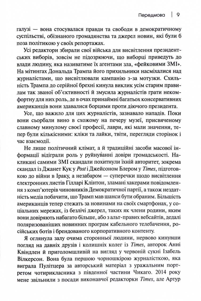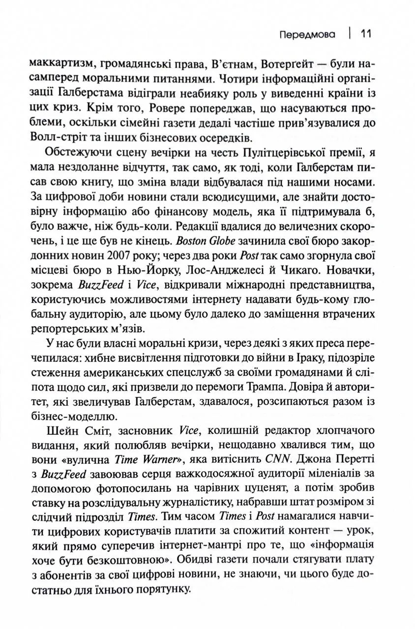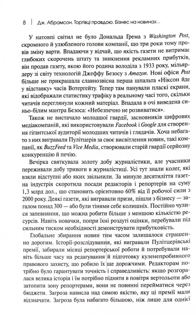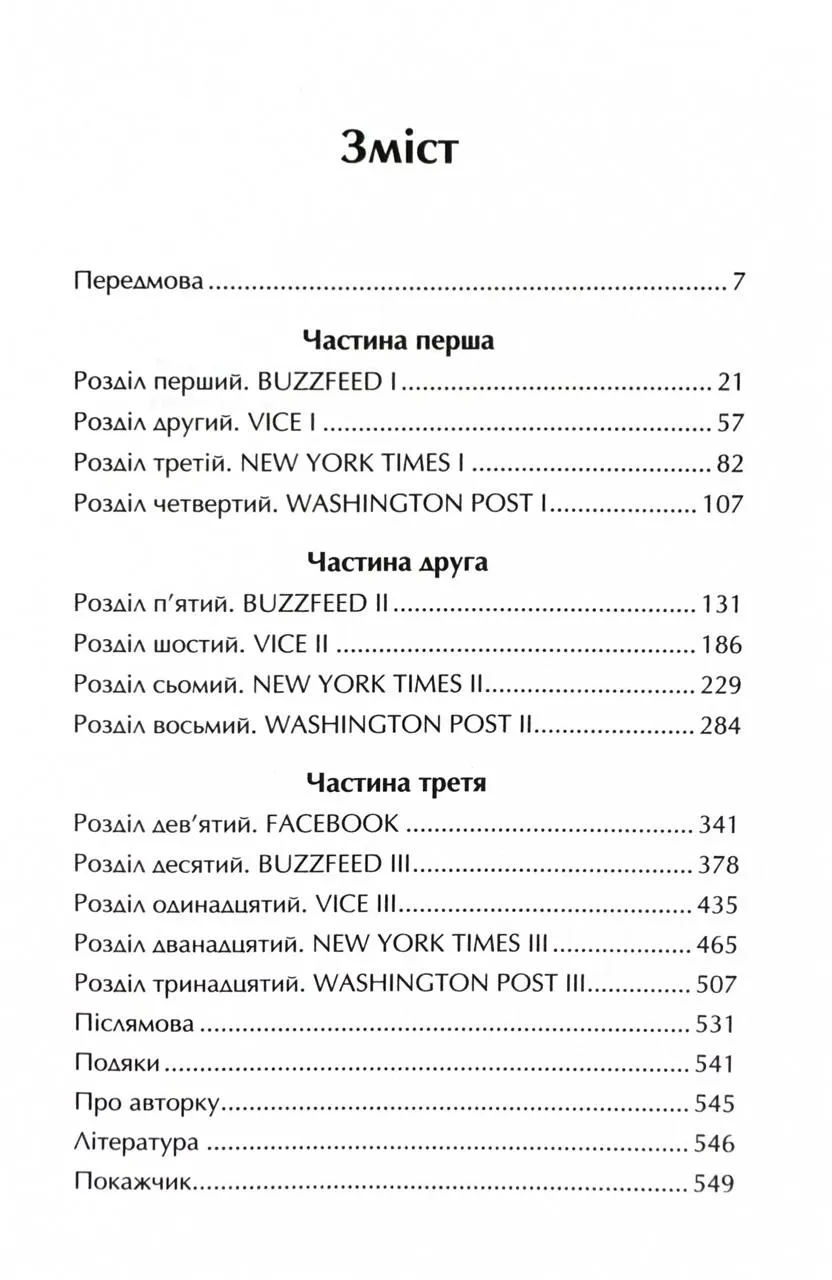 Новаторська та захоплююча історія про нестабільний стан новинного бізнесу, розказана однією із найвидатніших журналістів. Джілл Абрамсон стежить за чотирма компаніями: The New York Times, The Washington Post, BuzzFeed і VICE Media протягом десятиліття занепаду та радикальних змін, революції в технологіях, економіці, стандартах подання новин. Нова цифрова реальність ледь не вбиває дві поважні газети зі старіючої читацькою аудиторією, одночасно створюючи двох медіа-гігантів із зростаючою та мінливою аудиторією міленалів. Ви познайомитися з захисниками традиційної преси, а також з великими персонами, які створюють нових швидкісних медіа-конкурентів. Серед учасників Джефф Безос і Марті Барон (The Washington Post), Артур Сульцбергер і Дін Баке (The New York Times), Джона Перетті (BuzzFeed) і Шейн Сміт (VICE), а також репортери цих медіа та стурбовані читачі. Під експертним керівництвом колишнього виконавчого редактора The New York Times Джілл Абрамсон перед читачем постає остаточний звіт про руйнування ЗМІ за останнє десятиліття. Книга порушує ключові питання, які стосуються добробуту вільного суспільства, та кризою довіри, яка загрожує вільній пресі.