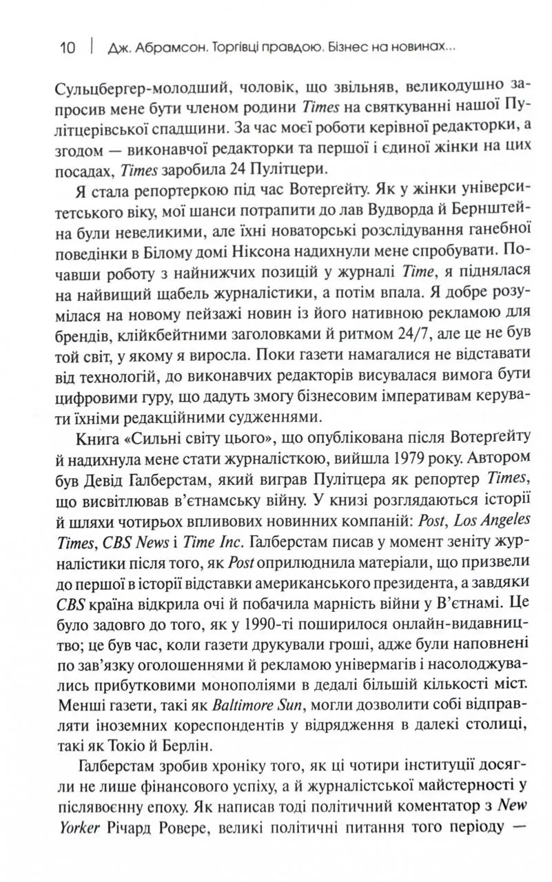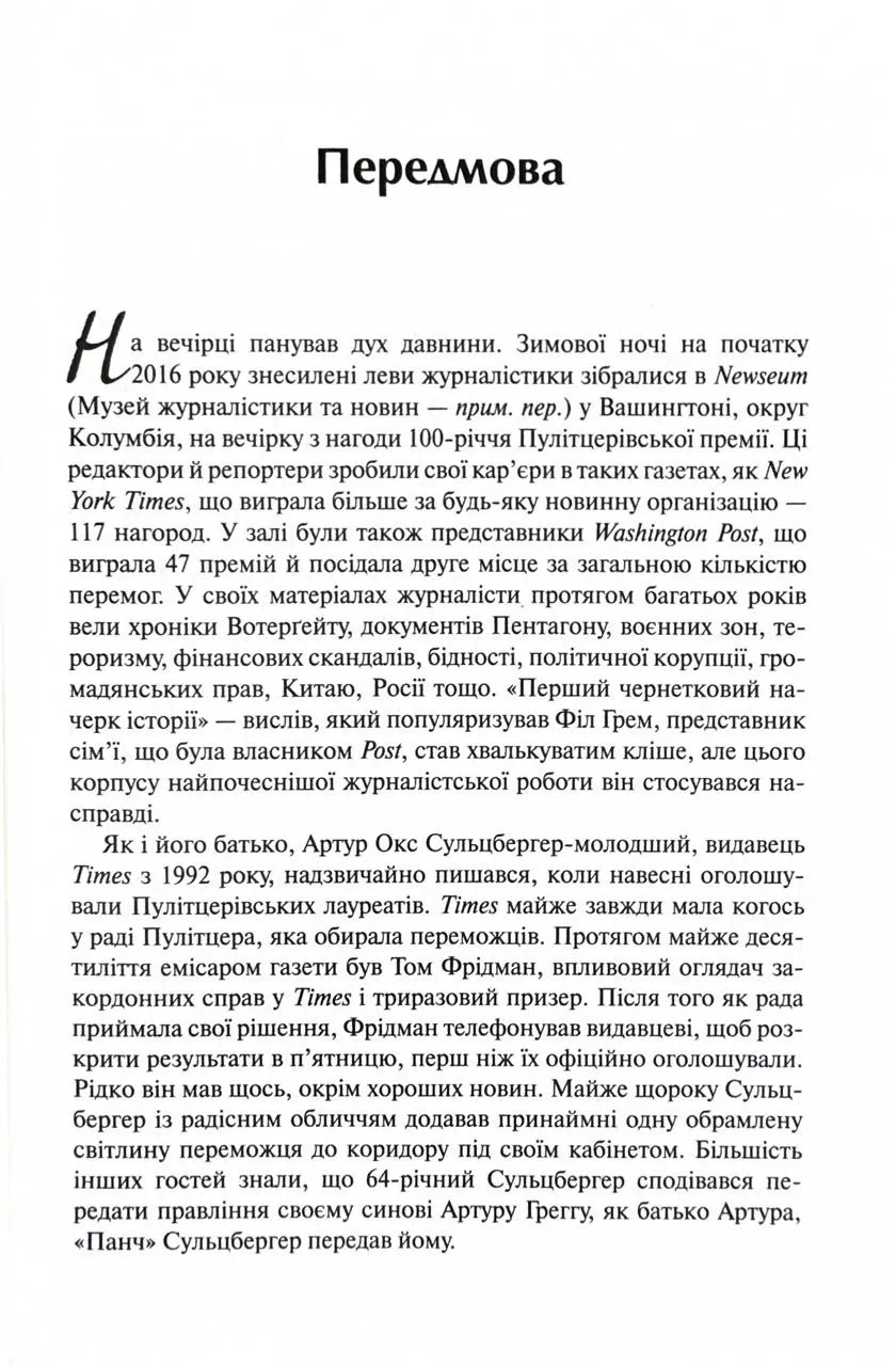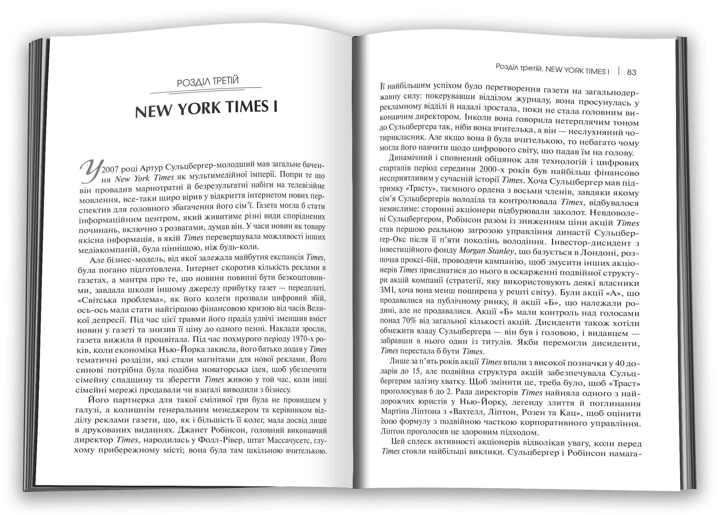 Новаторська та захоплююча історія про нестабільний стан новинного бізнесу, розказана однією із найвидатніших журналістів. Джілл Абрамсон стежить за чотирма компаніями: The New York Times, The Washington Post, BuzzFeed і VICE Media протягом десятиліття занепаду та радикальних змін, революції в технологіях, економіці, стандартах подання новин. Нова цифрова реальність ледь не вбиває дві поважні газети зі старіючої читацькою аудиторією, одночасно створюючи двох медіа-гігантів із зростаючою та мінливою аудиторією міленалів. Ви познайомитися з захисниками традиційної преси, а також з великими персонами, які створюють нових швидкісних медіа-конкурентів. Серед учасників Джефф Безос і Марті Барон (The Washington Post), Артур Сульцбергер і Дін Баке (The New York Times), Джона Перетті (BuzzFeed) і Шейн Сміт (VICE), а також репортери цих медіа та стурбовані читачі. Під експертним керівництвом колишнього виконавчого редактора The New York Times Джілл Абрамсон перед читачем постає остаточний звіт про руйнування ЗМІ за останнє десятиліття. Книга порушує ключові питання, які стосуються добробуту вільного суспільства, та кризою довіри, яка загрожує вільній пресі.