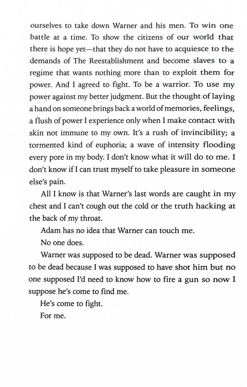 X-Men meets The Handmaid's Tale in the second instalment in an epic and romantic YA fantasy trilogy perfect for fans of Sarah J. Maas, Victoria Aveyard's The Red Queen, Netflix's Stranger Things and Leigh Bardugo's Six of Crows.They want to find me. I will find them first.Juliette has escaped. She has found the headquarters of the rebel resistance - and people like her. People with gifts. She is free from The Reestablishment, free from their plan to use her as a weapon, and free to love Adam.But Juliette will never be free from her lethal touch. Or from Warner, who wants Juliette more than she ever thought possible.In this heart-racing sequel to the New York Times bestselling Shatter Me, Juliette has to make life-changing decisions between what she wants and what she thinks is right. Decisions that might involve choosing between her heartand the life of those she loves.