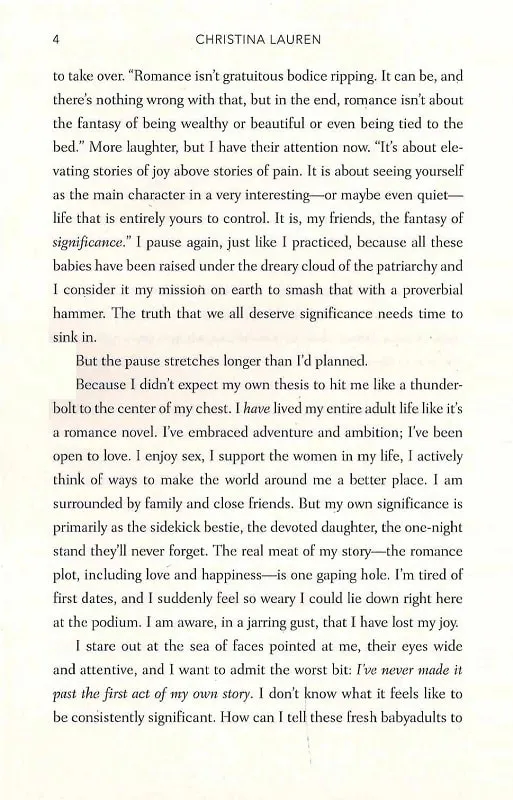 Felicity 'Fizzy' Chen is lost. Sure, she has an incredible career as a beloved romance novelist with numerous bestsellers to her name, but when she's asked to give a commencement address, it hits her: she hasn't been practising what she's preached.