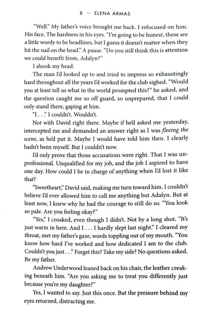 Adalyn Reyes has something to prove. After years of working at her father's football club she wants to make a name for herself. But not for the wrong reasons.