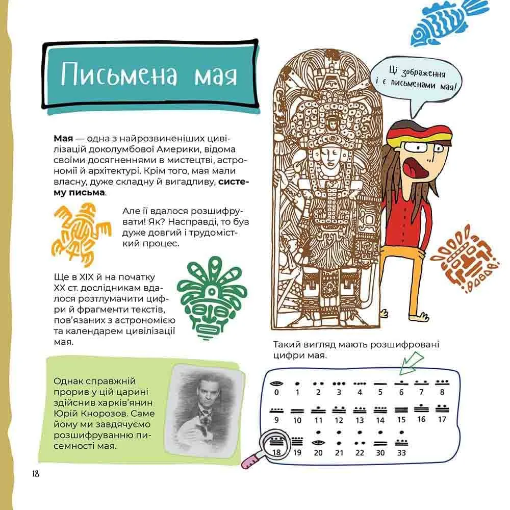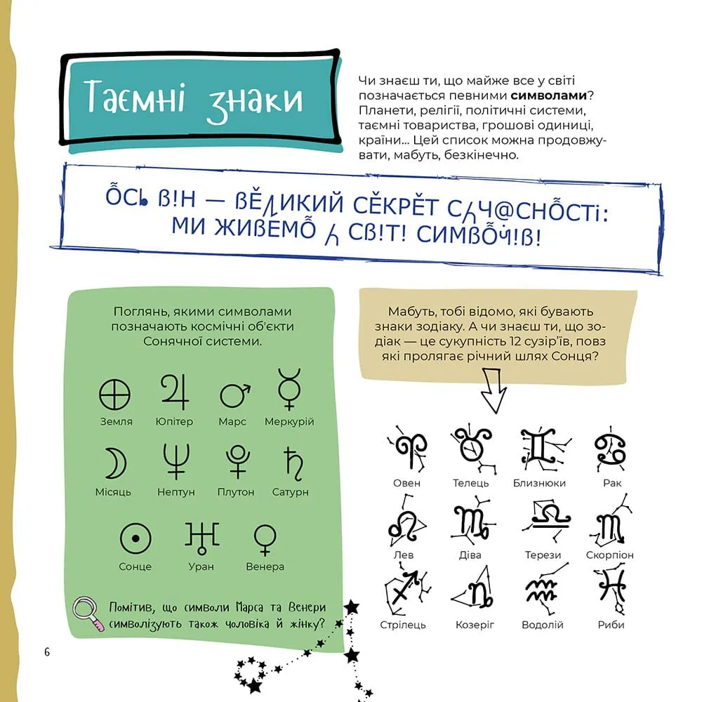 На сторінках розташована не лише цікава інформація, а й безліч різноманітних завдань. Тож, наприклад, дізнавшись про системи кодування, хлопчик одразу ж спробує вигадати таємний шифр, а прочитавши про піратів, створить власну піратську мапу.
