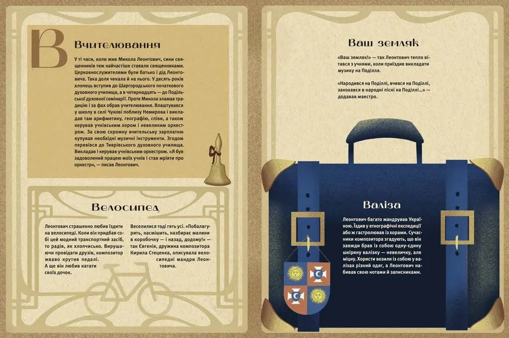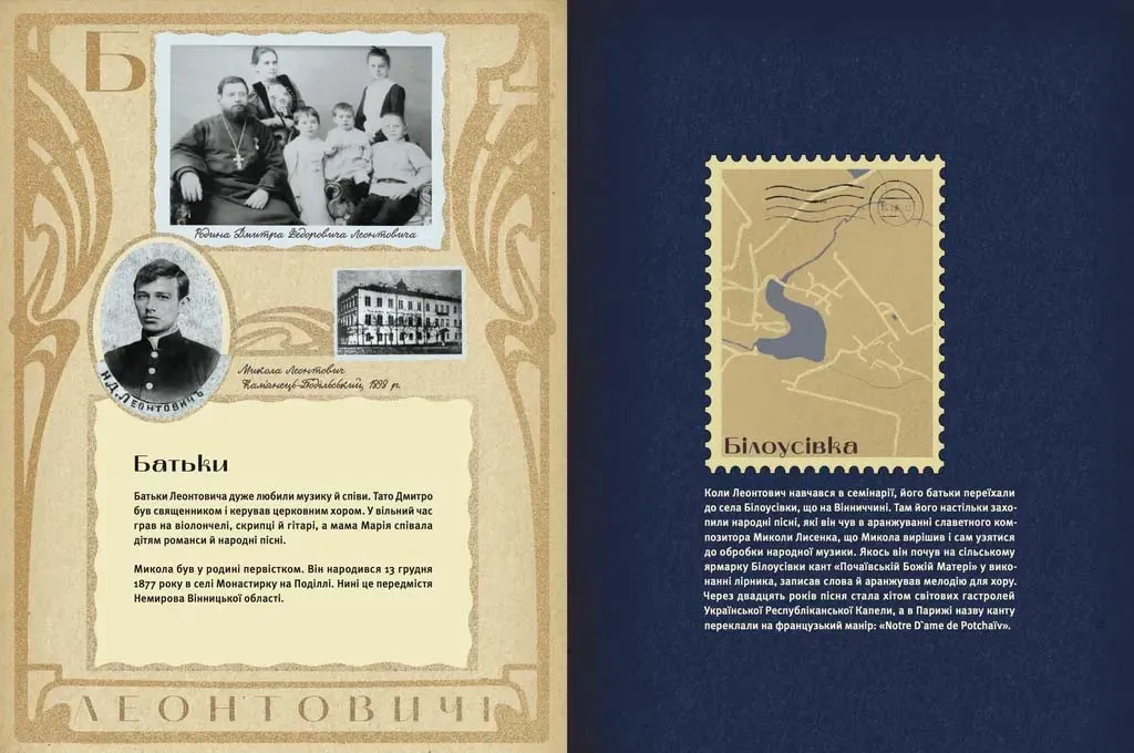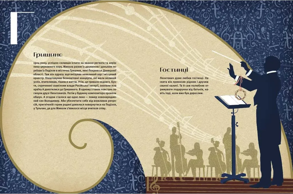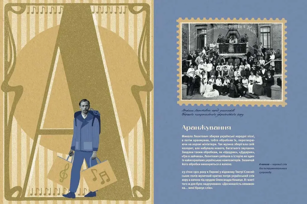 «Щедрик, щедрик, щедрівочка, прилетіла ластівочка…» Так починається одна з найвідоміших різдвяних пісень світу. Найвідомішу хорову обробку до цієї пісні написав Микола Леонтович, геніальний композитор, чий творчий спадок став одним із найвизначніших музичних скарбів України і світу. У цій книжці читач має нагоду познайомитися з ним ближче. Леонтович викладав музику та був новатором в аранжуванні, любив жартувати і кататися на велосипеді, багато мандрував Україною і працював урядовцем Української Народної Республіки. Книжку «Леонтович від А до Я» написала Оксана Лущевська, а намалювала Христина Валько, продовжуючи традицію родинних абеток про визначних українців від «Видавництва Старого Лева».