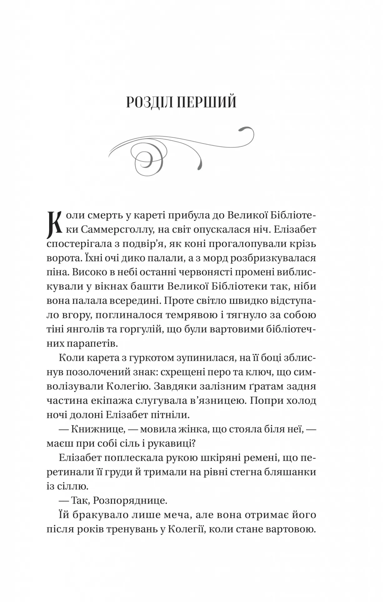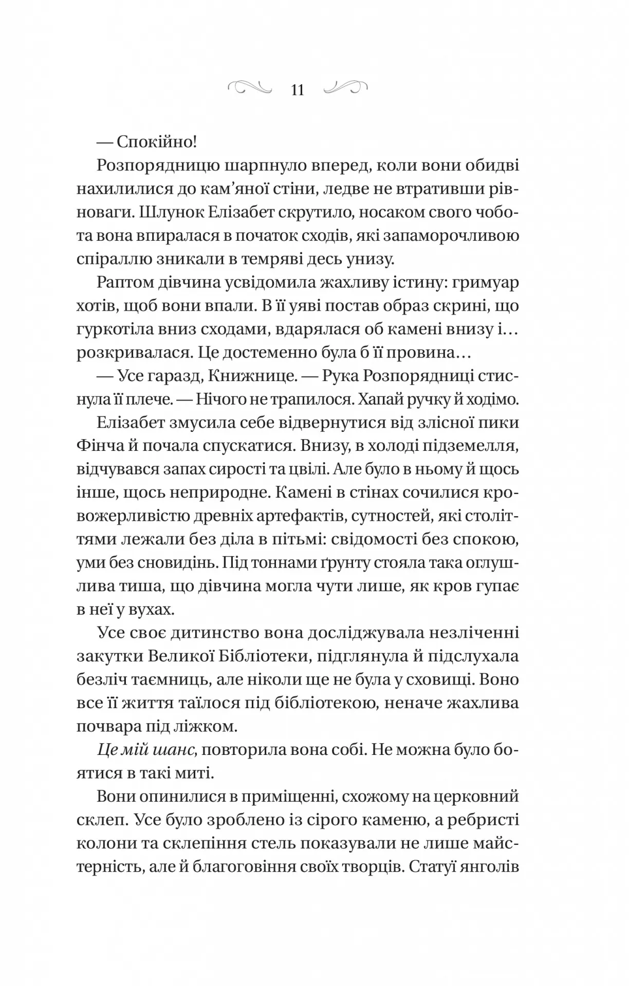 Усі чаклуни — злі. Елізабет знала цю істину відтоді, відколи пам’ятала себе. Адже вона зросла при одній з Великих Бібліотек Остерміру, серед витворів чаклунства — небезпечних магічних гримуарів, які шепочуться на полицях і брязкають залізними ланцюгами. Один необережний рух — і гримуар перетвориться на смертельного монстра з чорнила та шкіри.