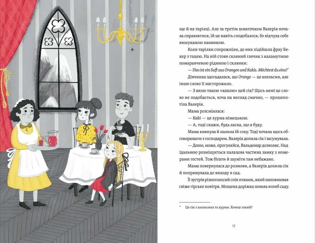 Але виявляється, що старовинний замок сповнений таємниць. Дівчинка береться шукати скарб, а знаходить нових друзів і відкриває в собі здібності до німецької мови.