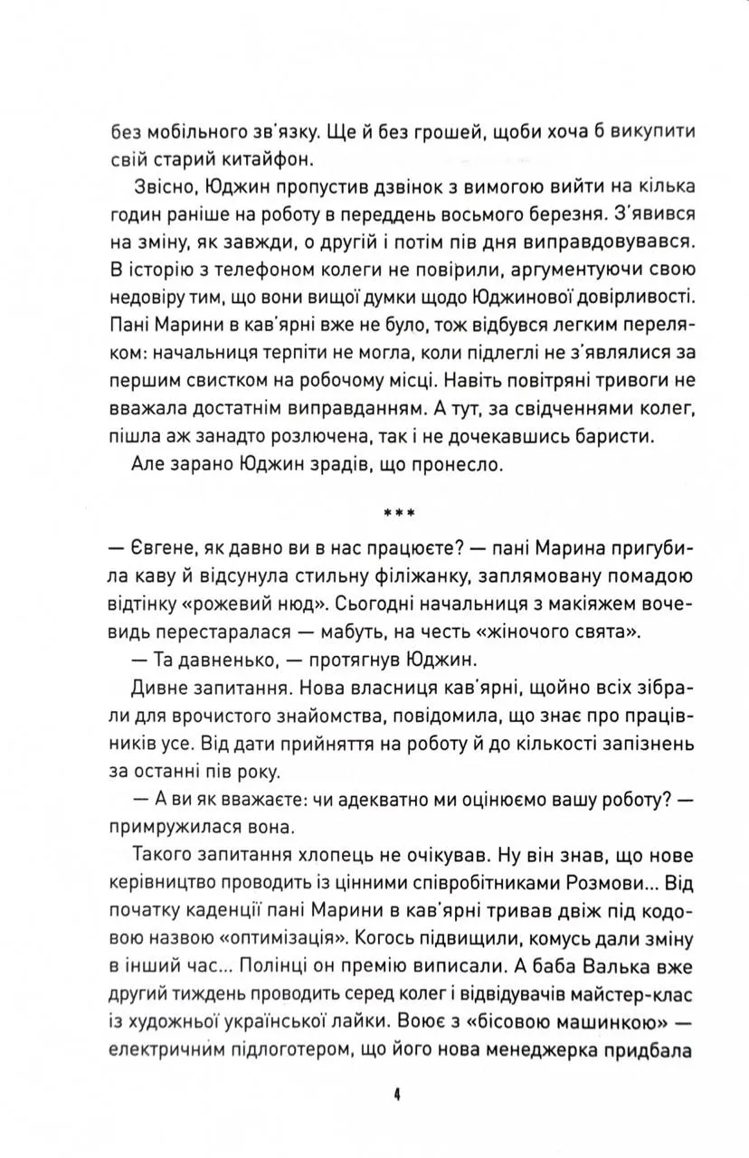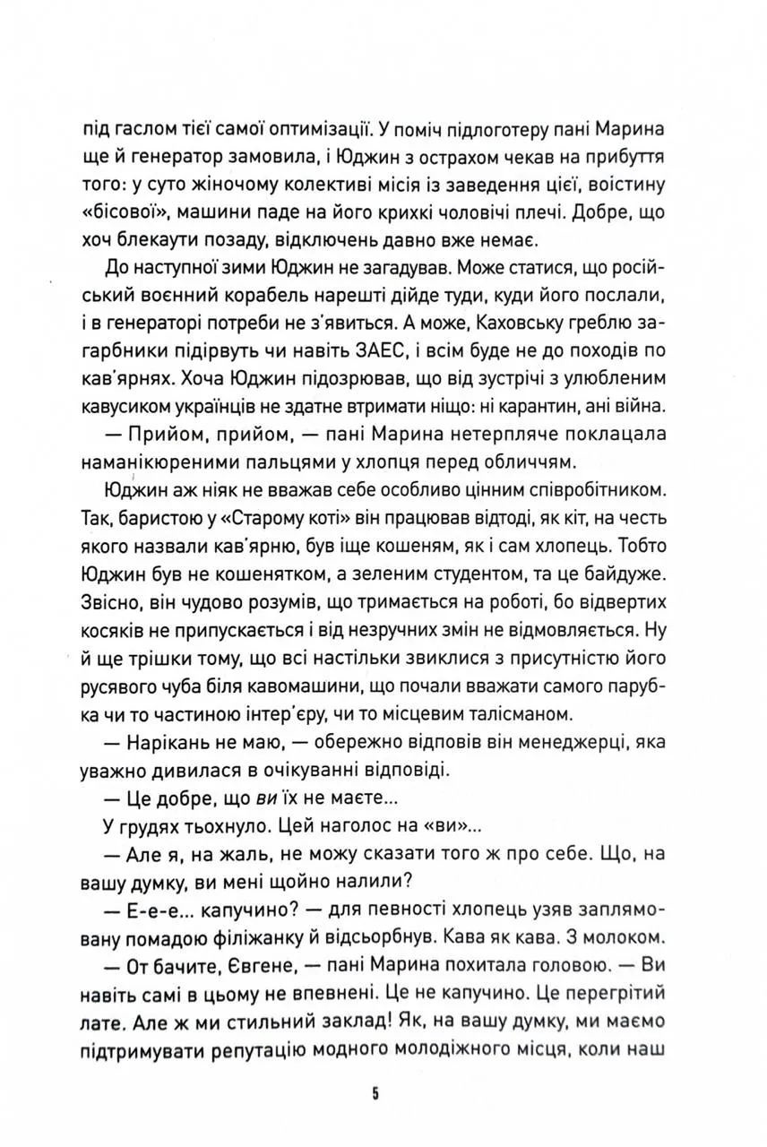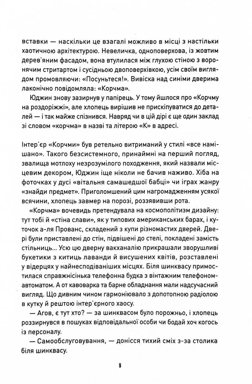 Новенькому ж Корчмареві доведеться не тільки давати раду місцевій кавомашині, а й розбиратися з природою місця, частиною якого він став. А ще з’ясувати, ким був його попередник на посаді та чому пішов поспіхом, навіть не передавши справи, і до чого тут сучасна Україна.