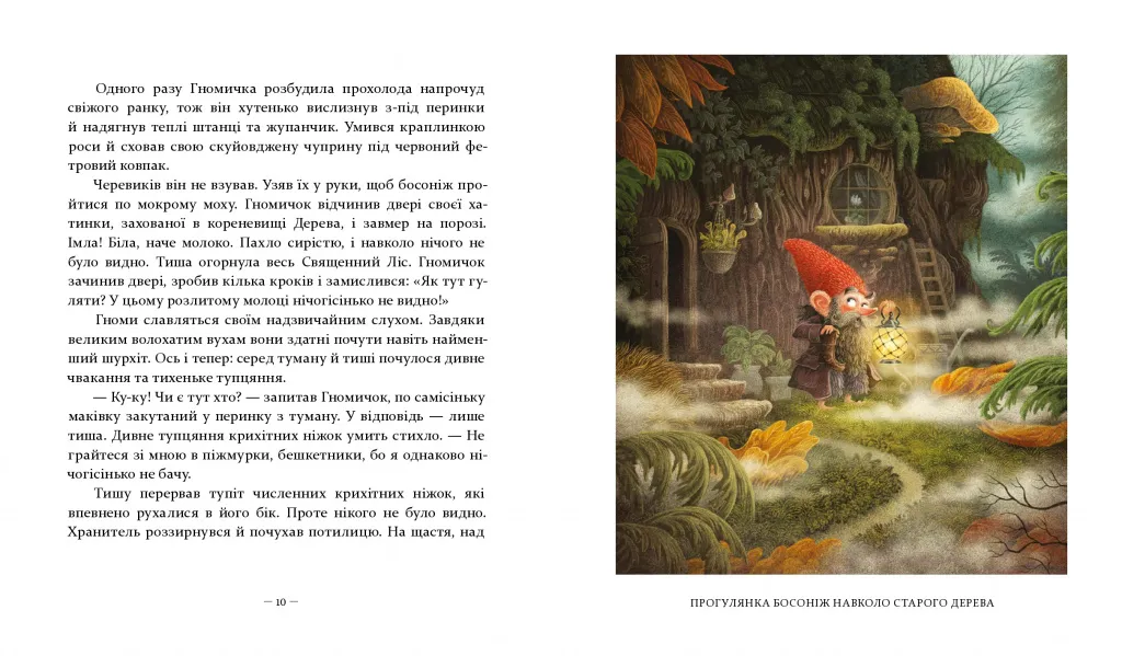 Ще з прадавніх часів у кореневищі величезного дерева ховалася хатинка лісового хранителя. Це був гном, імені якого вже ніхто не пам'ятає, тож усі називають його просто Гномичок.