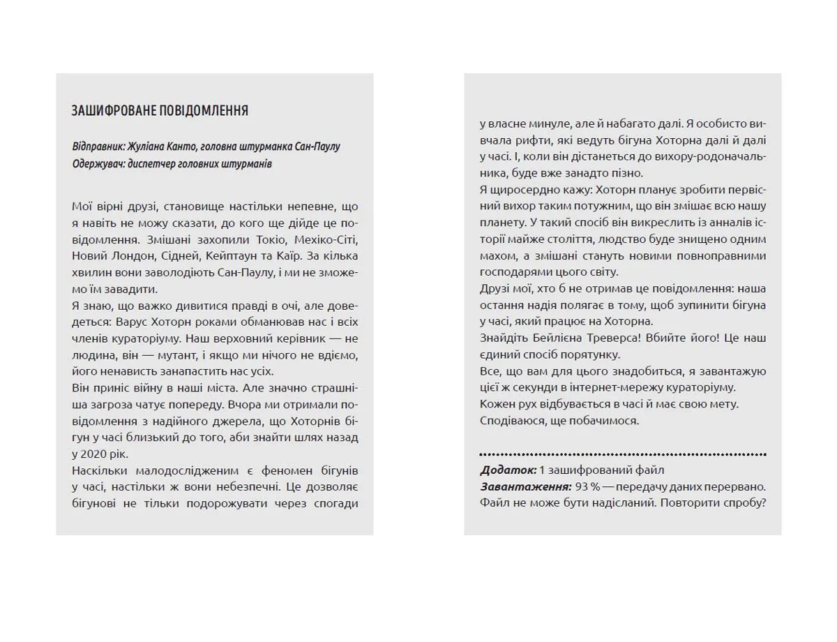 Перший вихор був початком цього світу. А тепер він може стати його кінцем. Доки триває війна й угруповання Червоної Бурі наступає, Елейн знає, хто становить справжню загрозу. Хлопець, якого вона кохає. Бейл. Дівчина намагається врятувати його за всяку ціну, нагадати йому, хто він є і що значить для неї. Бо, якщо вона цього не зробить, він занапастить усіх. Але кожен відрізок часу відкриває щоразу нові таємниці, і починається подорож у невідомість, туди, де все зародилося…