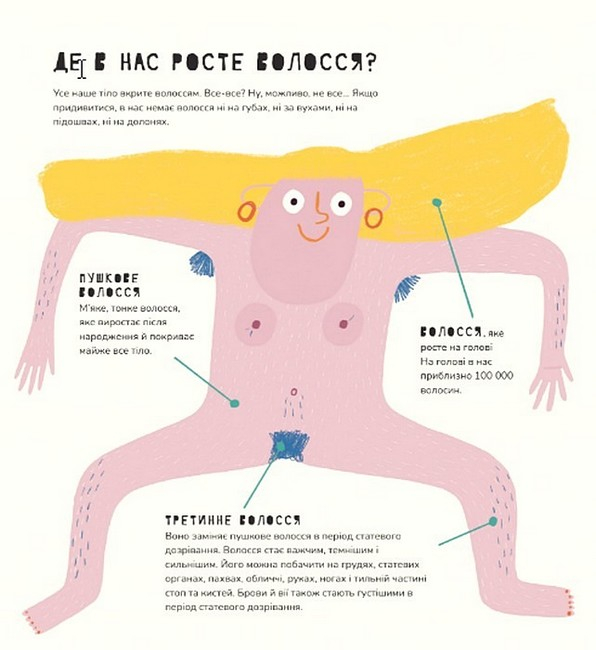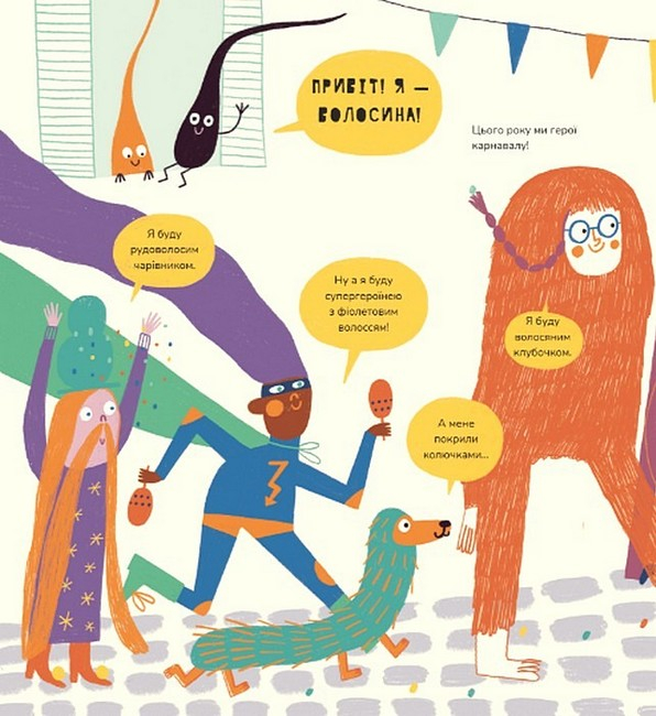 Чому в мене руде волосся, а в дідуся — сиве? Погляньте, якщо я випрямляю своє кучері, воно знову закручується! Чому моє волосся не завжди однакової довжини? Чому нам неболяче, коли нас стрижуть? Волосся приховує багато загадок. Воно в нас майже по всьому тілу й захищає нас від багатьох небезпек.