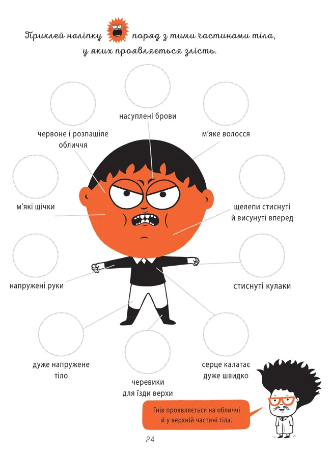 Розваги, цікаві ігри, інтерактивні завдання та наліпки — усе це чекає на дітей у цій книзі! Вона допоможе маленьким читачам зрозуміти свої емоції, навчитися справлятися з гнівом та краще розуміти себе й оточуючих. Перегортаючи сторінки, діти дізнаються: