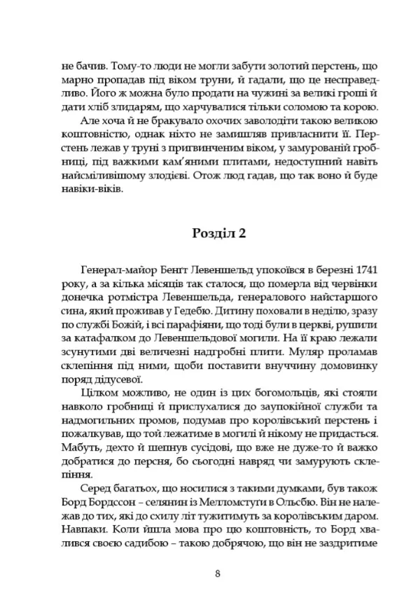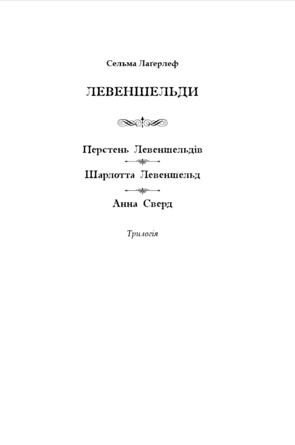 Перед українським читачем постає унікальна можливість познайомитися з трилогією видатної шведської письменниці, лауреатки Нобелівської премії Сельми Лаґерлеф (1858–1940) — «Перстень Левеншельдів», «Шарлотта Левеншельд» і «Анна Сверд». У центрі цієї панорамної оповіді стоїть містична історія персня, який належав генералу Левеншельду. Ця загадкова коштовність глибоко впливає на долі членів роду Левеншельдів та інших осіб, що тимчасово володіли нею.