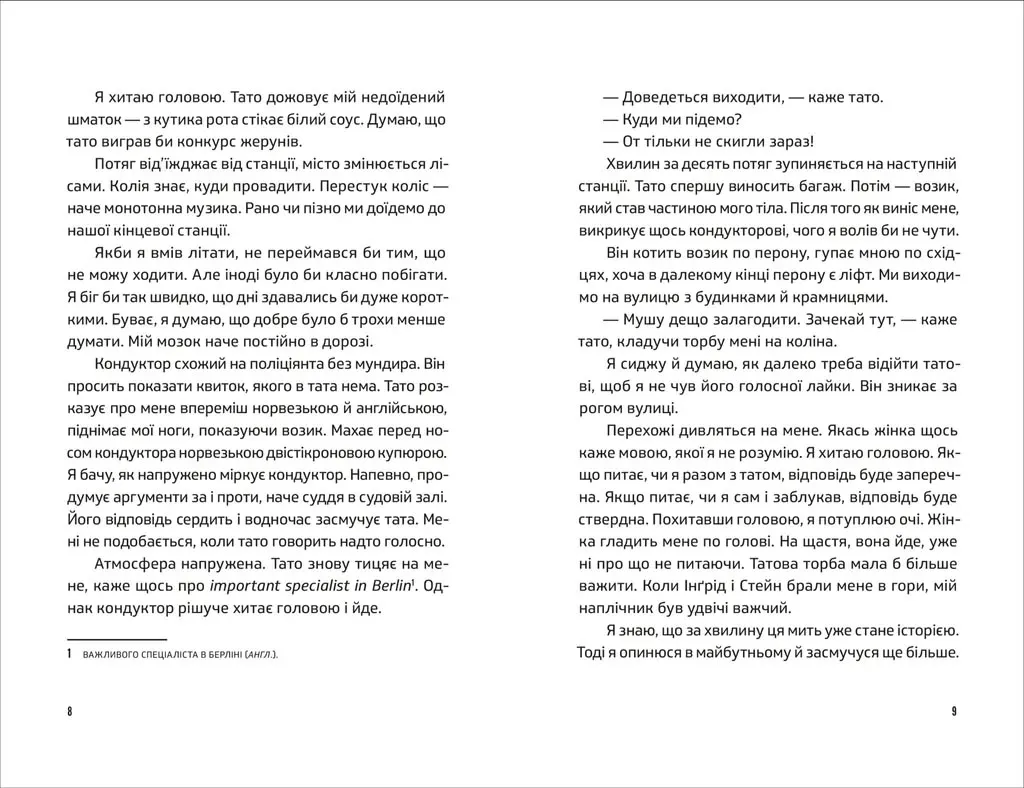 Коли Ейрік з татом опиняється в Берліні, це може скидатися на мандрівку або канікули, однак це ні те, ні інше. Чому гаслом підлітка на кріслі колісному і його тата стає: «Ноги в руки, і гайда»? Куди поділася мама Ейріка, як пов’язаний з його життям готичний трилер Мері Шеллі «Франкенштайн» і чому хлопець не може навчатися зі своїми новими друзями в німецькій школі — читайте у захопливій повісті норвезького письменника Арне Свінґена в чудовому перекладі Наталі Іваничук.