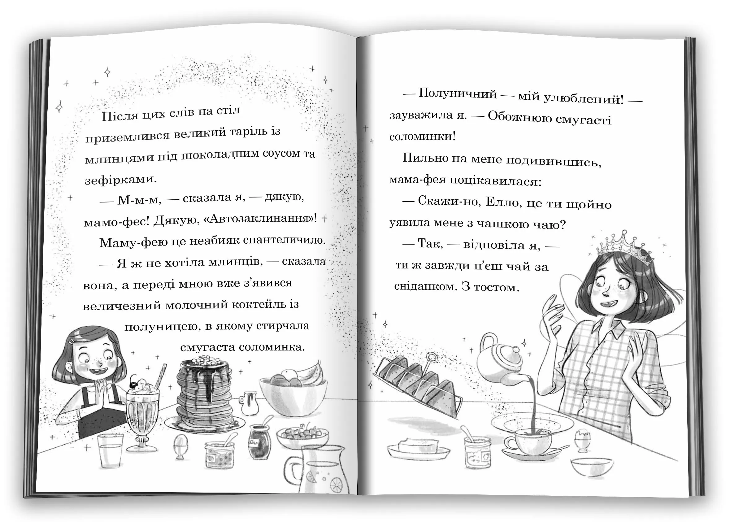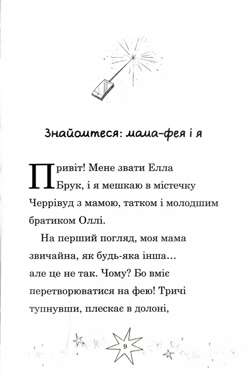 Яскрава й кумедна історія, яка захопить маленьких читачів у світ магії та веселих пригод. Елла та її мама-фея завжди знаходять спосіб зробити повсякденне життя неймовірно захопливим. Політ автівкою до школи, де магія крутить кермо, день, присвячений макаронам і веселим іграм, танці з вівцями та навіть зустріч із справжнім єдинорогом — усе це робить історію чарівною й незабутньою!