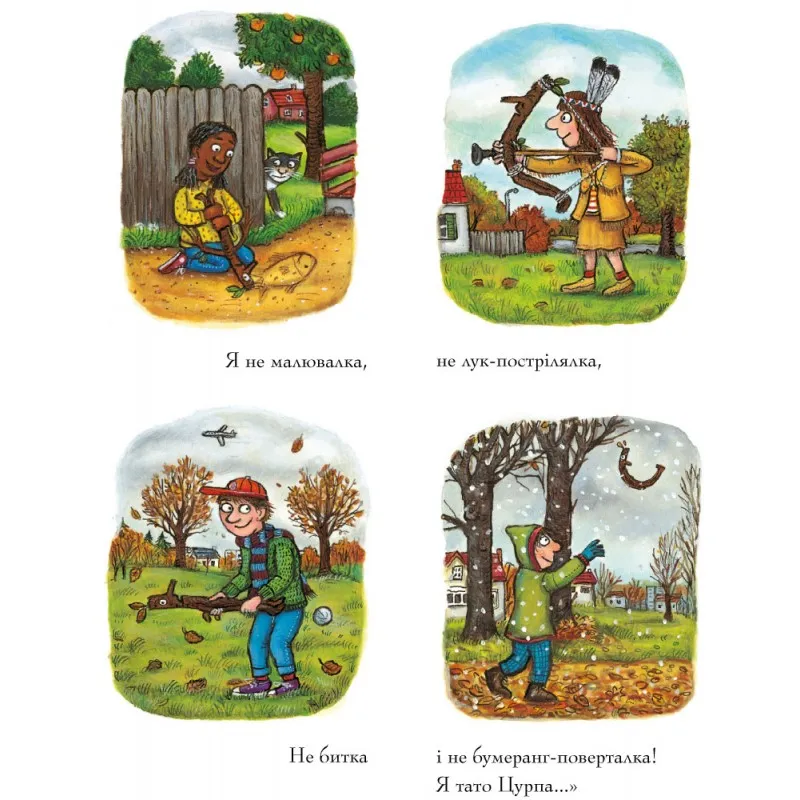 Незвичайні герої, цікаві пригоди, буря позитивних емоцій та яскраві ілюстрації – це візитна карточка двох геніальних напарників у світі дитячої літератури – Джулії Дональдсон та Акселя Шеффлера. «Цурпалко» відноситься до їх найвідоміших творінь. Історія про пригоди оригінального персонажа тата-палки в цьому величезному та небезпечному світі справді заворожує з перших рядків і дарує безліч приємних вражень.