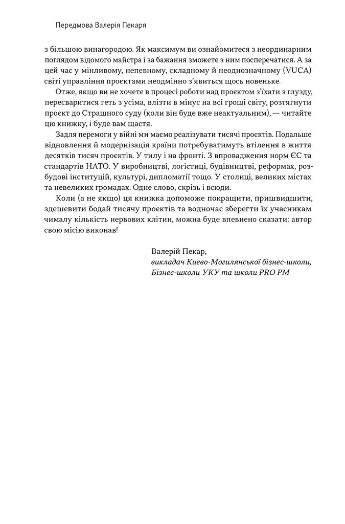 Олексій Просніцький у своїй книзі відповідає на актуальне питання: чому західні методи управління проєктами не завжди ефективно приживаються в Україні? Він вважає, що стандартні підходи потребують адаптації, оскільки в кожній країні існують свої унікальні реалії та виклики. Книга об'єднує всі аспекти проєктного менеджменту в структуровану систему, орієнтовану на український контекст. Завдяки десяткам прикладів та 12 бізнес-кейсам від провідних українських компаній, автор демонструє, як теорію та інструменти можна інтегрувати в практику українського бізнесу.