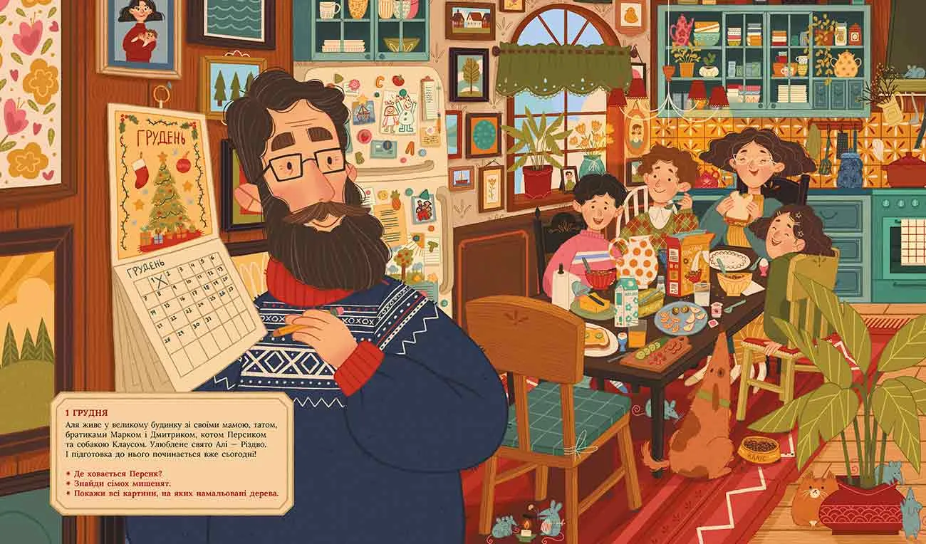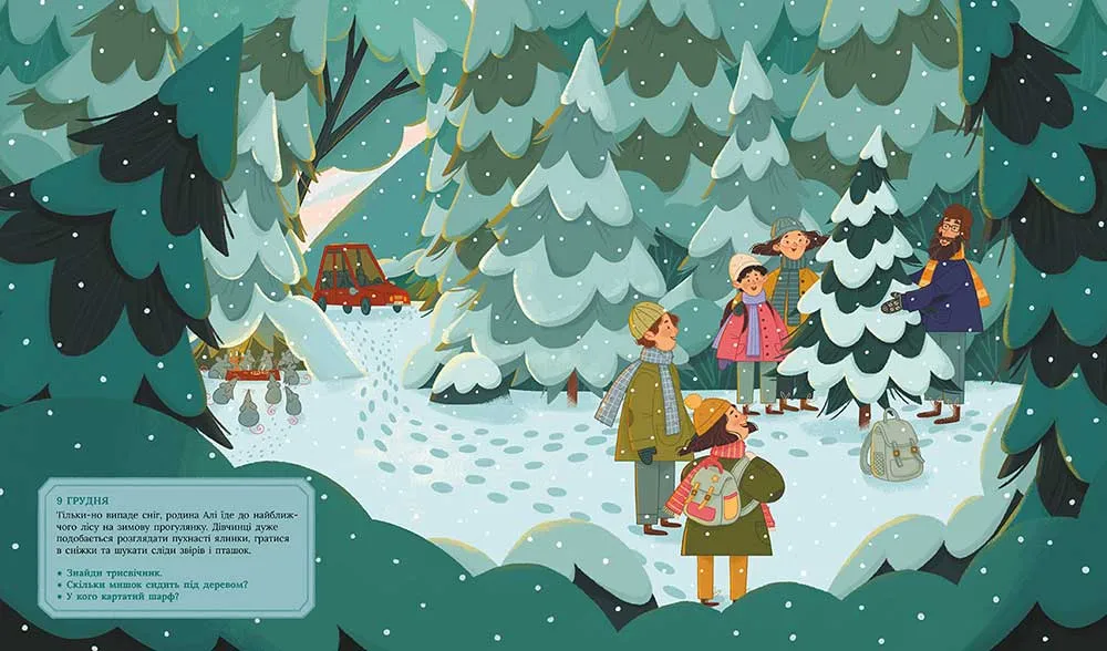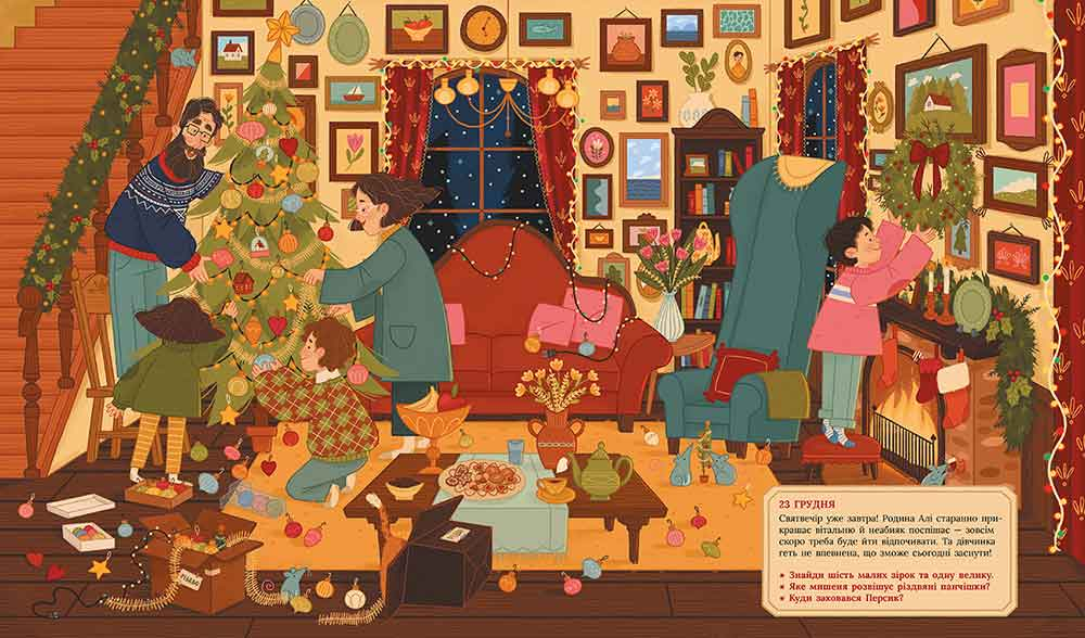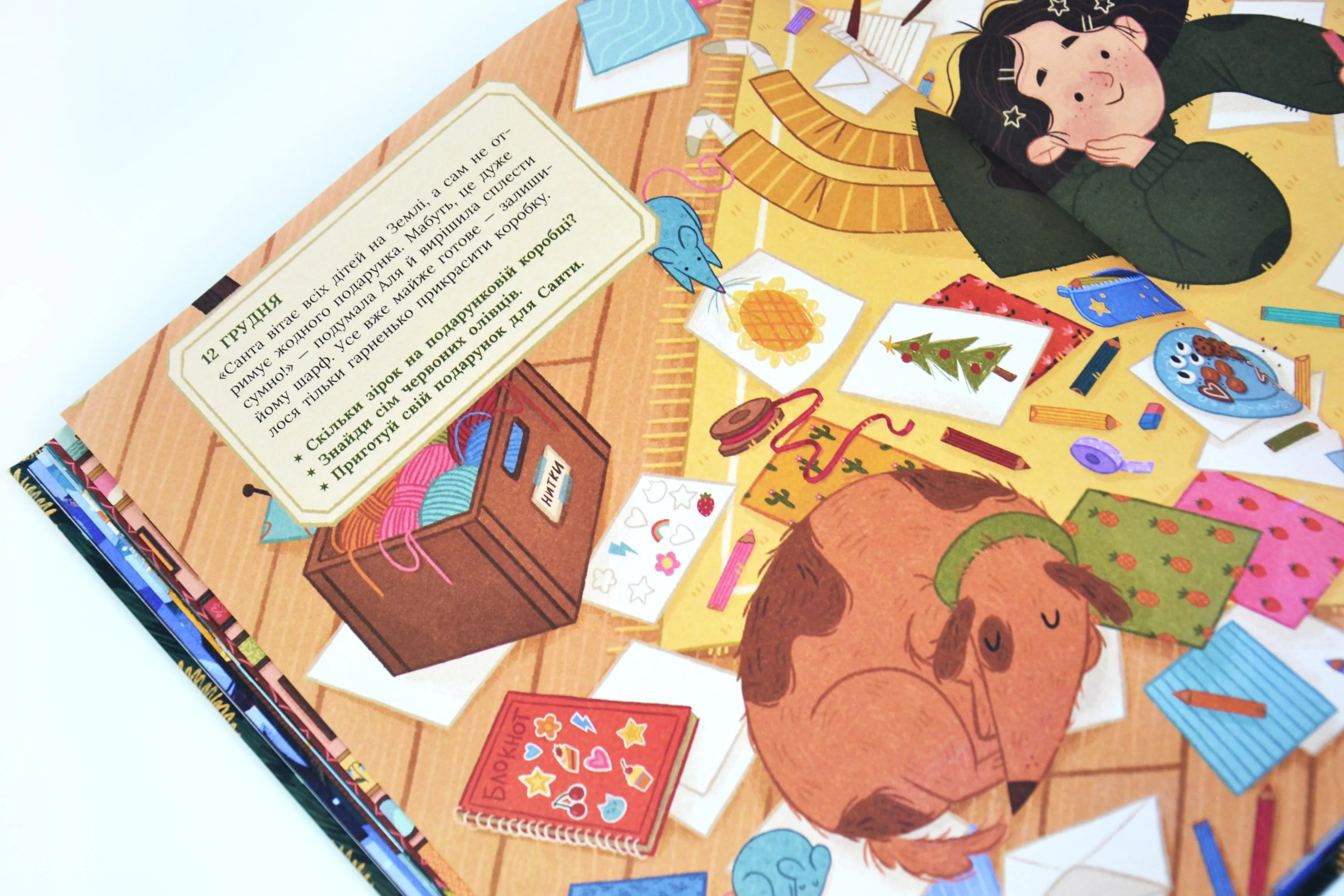 Подаруйте дитині справжнє зимове диво — 24 дні передріздвяних пригод із календарем завдань, які створюють атмосферу радісного очікування свята! Весь грудень Аля разом із родиною готується до Різдва: прикрашає оселю, майструє святкові прикраси, вибирає подарунки й наряджає ялинку. Тим часом Санта-Клаус на Північному полюсі невтомно працює зі своїми помічниками, читаючи дитячі листи, збираючи подарунки та готуючись до чарівної ночі. Ця історія покаже, як маленькі дива можуть стати реальністю, коли в них по-справжньому віриш.