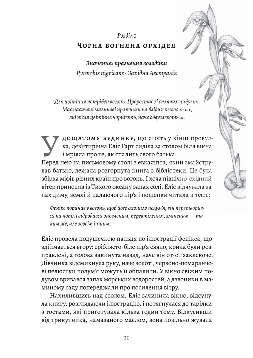 Юна дівчина змушена оселитися серед квітів та зломлених жінок квіткової ферми бабусі Джун — квіткарки, якої вона ніколи раніше не знала. Еліс зростає, вчить мову квітів, яка допомагає говорити про складне, і усвідомлює, що є рани, які нездатні загоїти навіть квіти. Сімейні таємниці поховані значно глибше, ніж квіткові коріння, і якщо вона хоче отримати свободу, то повинна знайти в собі сили відкрити найстрашнішу історію — свою власну.