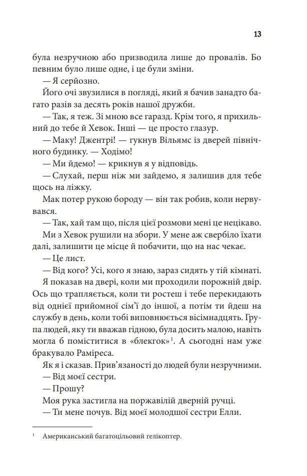 Якщо ти читаєш це, то знаєш, що таке остання воля. Ти вижив. А я ні. Я знаю, що якби був шанс врятувати мене, ти б це зробив. Мені потрібно від тебе одне: звільнися з армії, щоб приїхати в Телльюрайд.