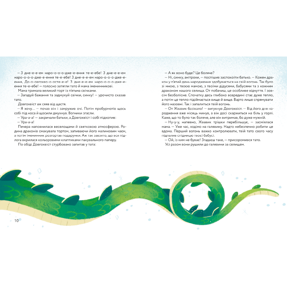 Запалити різдвяний вогонь цього разу випало п’ятирічному Довгохвостові, але за тиждень до свята він зрозумів, що не може дихати полум’ям. Щоб пробудити власний вогонь, дракончик наважується на далеку мандрівку, яка подарує йому незабутню пригоду, справжню дружбу і трошки драконячої мудрості.