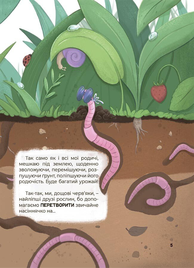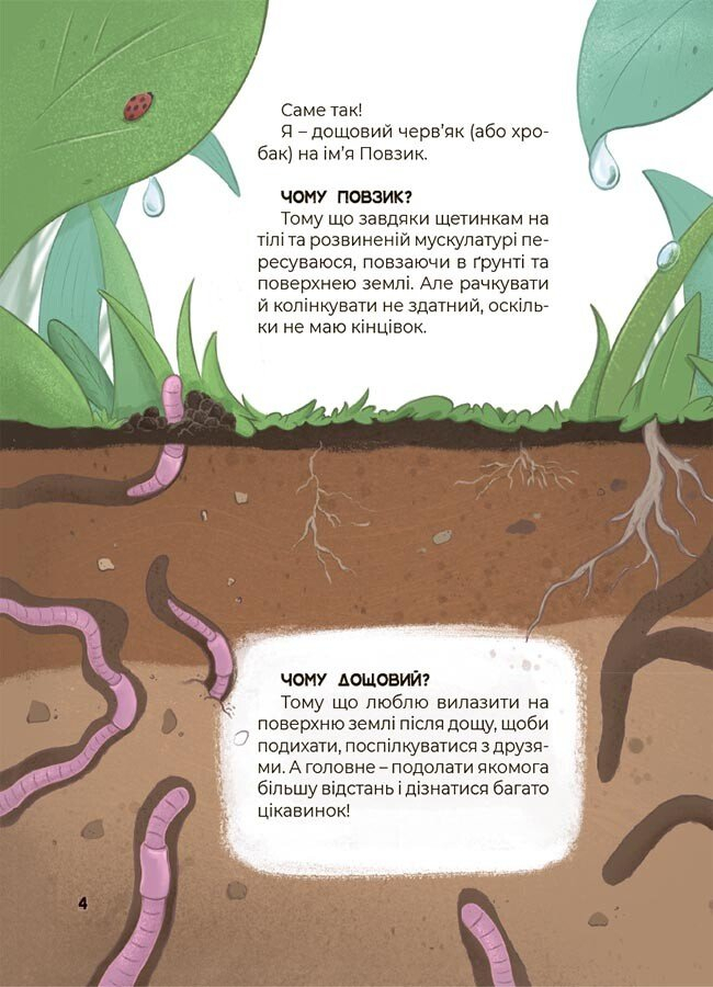 Головний герой цієї книжки — допитливий черв’ячок Повзик — запрошує маленьких читачів у неймовірну мандрівку світом живої природи. Кольорові ілюстрації та цікаві факти відкриють безліч секретів із життя рослин.