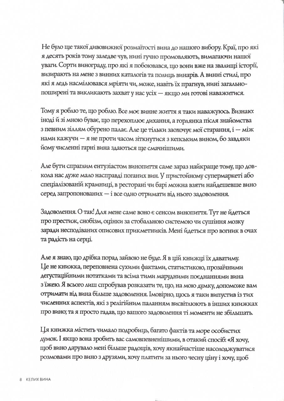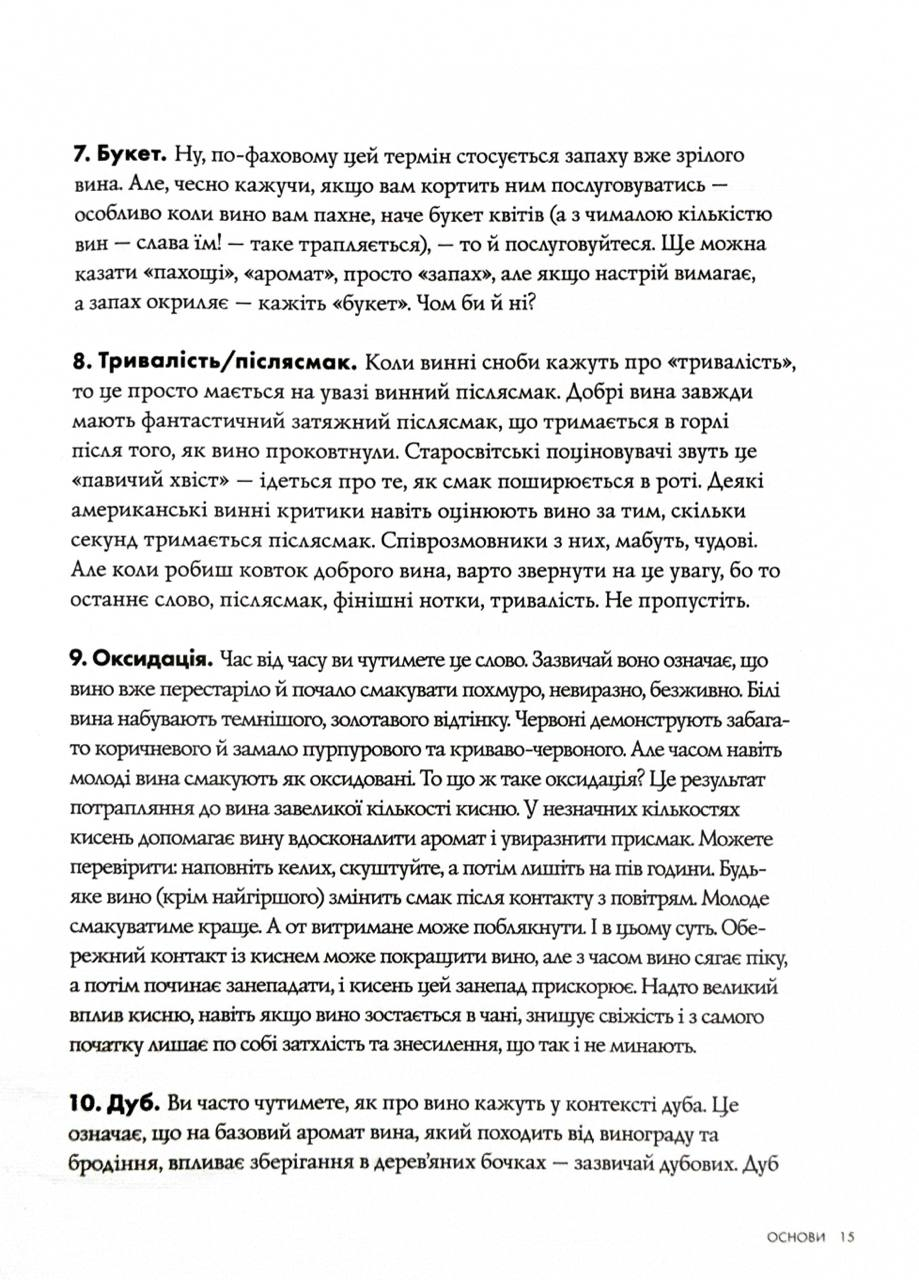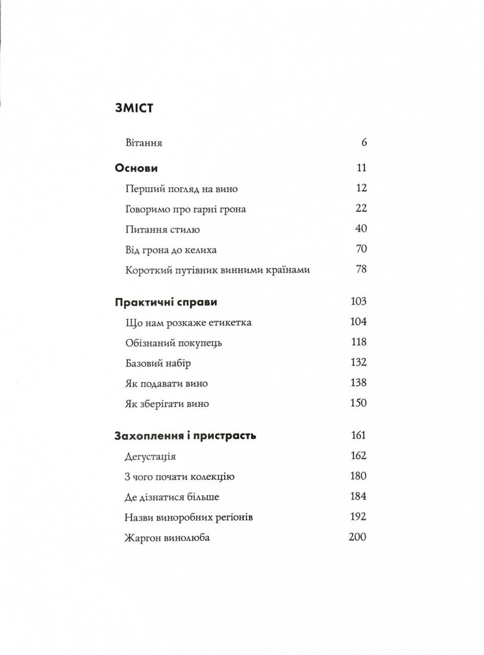 Книга підходить як для новачків, так і для тих, хто хоче розширити свої знання про світ вина. З кожним розділом ви робитимете крок уперед, відкриваючи для себе витонченість цього унікального напою та його магічний вплив на почуття.
