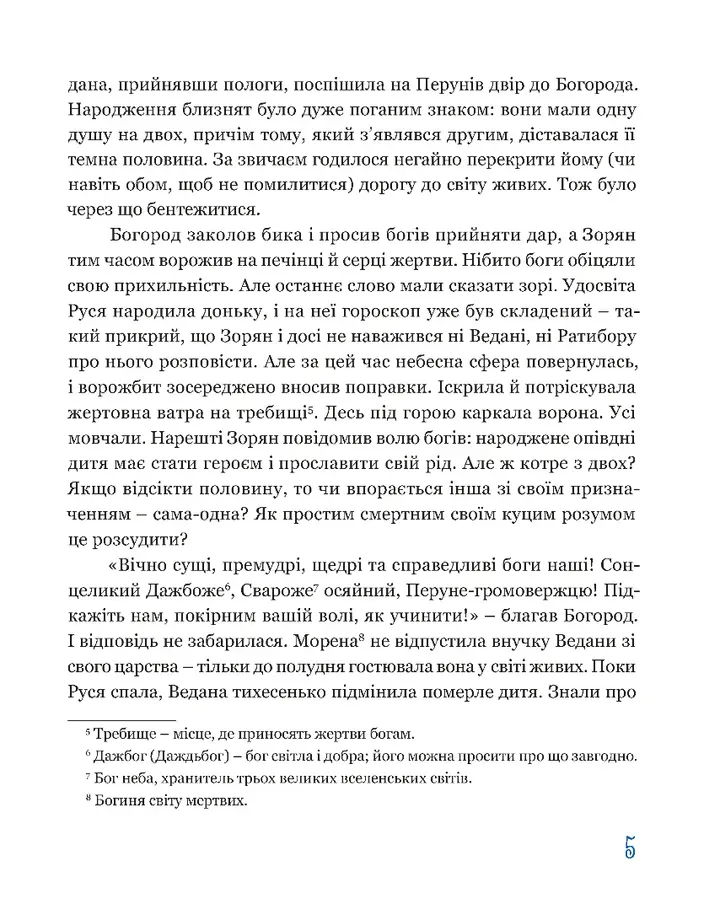 Роман, який описує пригоди близнюків із давньослов’янської міфології, занурює читача у світ язичницьких вірувань та міфів. Діти головного жерця Пліснеська, що народилися з однією душею на двох, стикаються з магічними випробуваннями, які вимагають не лише фізичної сили, а й мудрості та рішучості. Їхній шлях – це боротьба з темними силами природи і міфічними створіннями, які відображають страхи та надії того часу.