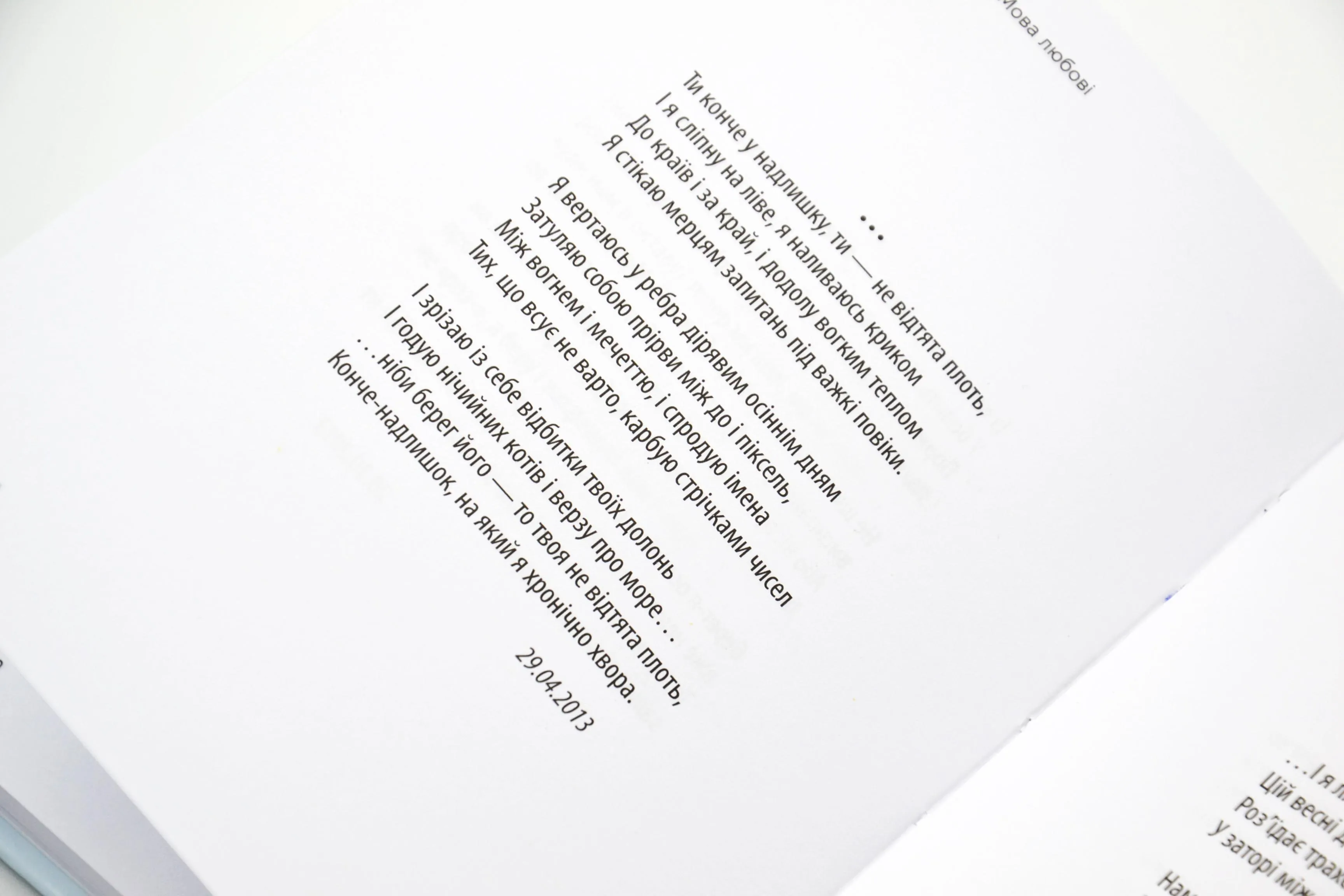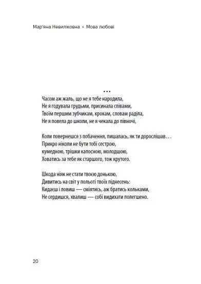 Поезія змушує задуматись над складними питаннями людської душі, перетинаючи кордони особистого і суспільного, з м'яким, але наполегливим запитанням про сутність життя, любові та болю.
