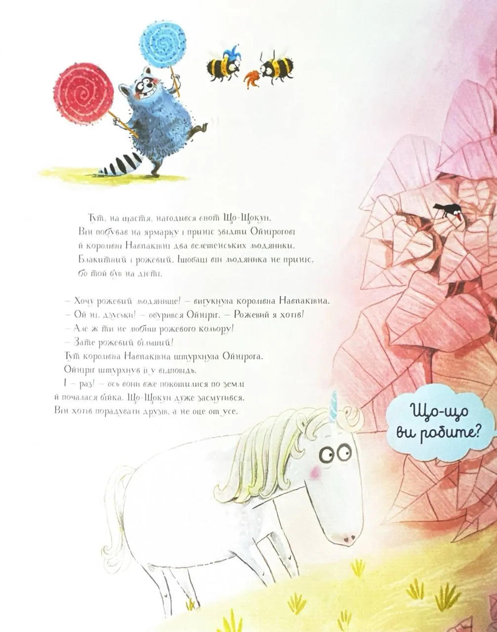 На своєму шляху він зустрічає незвичайних друзів: єнота Що-Щокуна, який постійно щось недочуває, собаку Ішобаку, якій нічого не цікаво, і королівну Навпаківну. Ці чотири різні створіння, кожне з яким має свої впертість і особливості, формують міцну дружну команду. Вони навчаються приймати одне одного такими, якими вони є, і знаходять у цьому радість та підтримку.