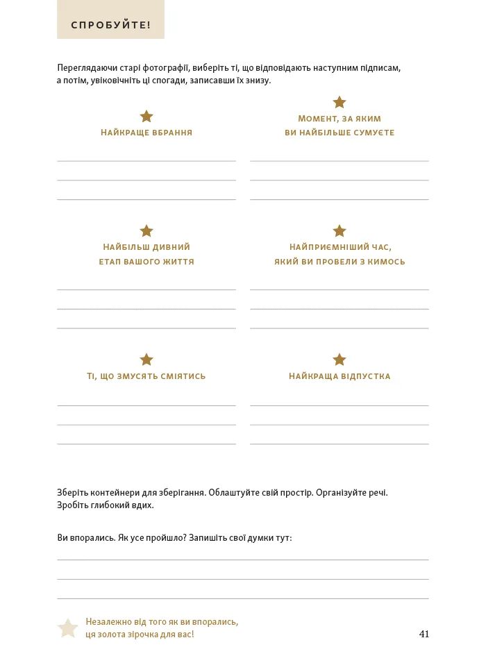 - Простір для запису спогадів і цінних моментів, пов’язаних із речами, які ви обираєте залишити.