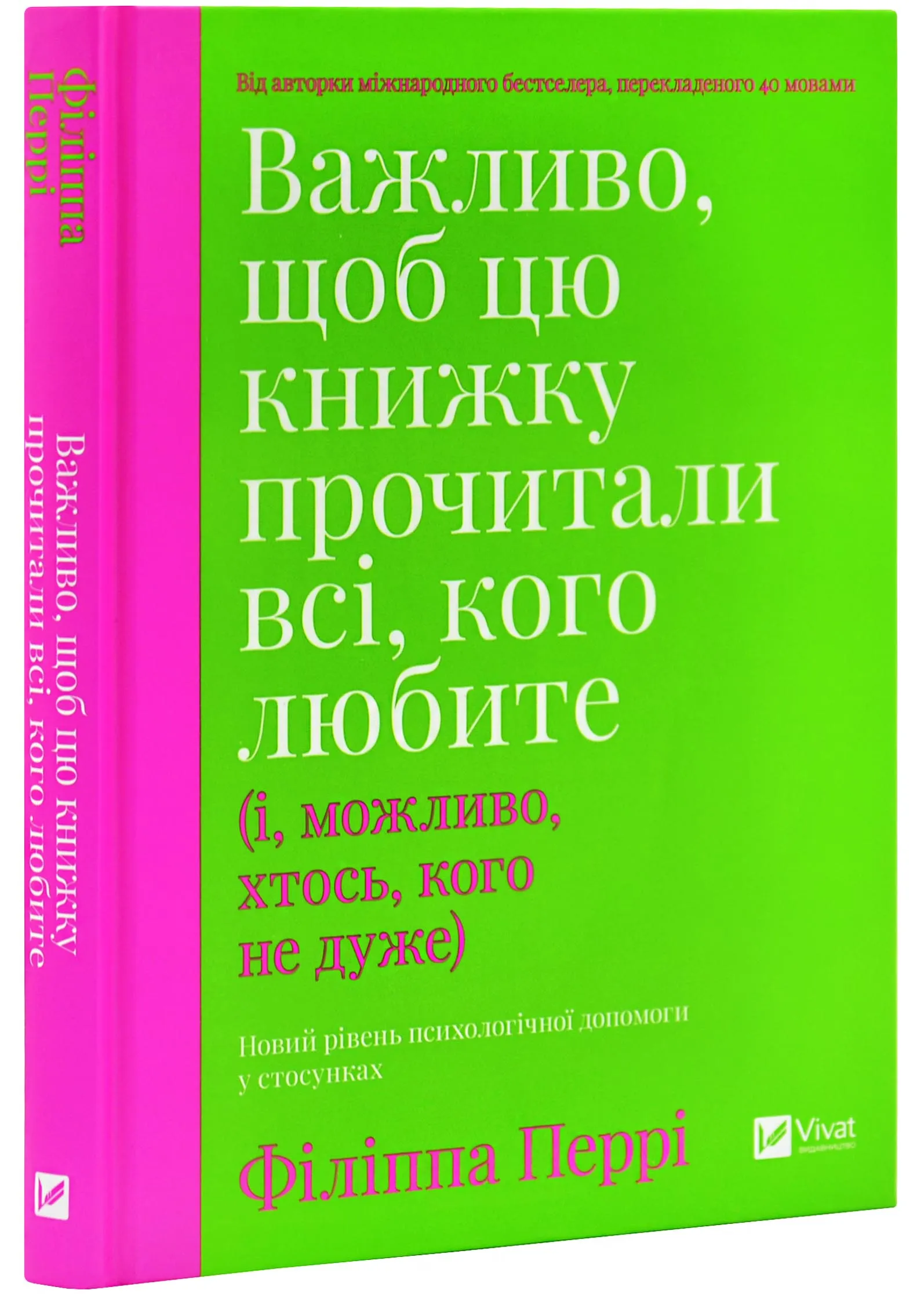 «Важливо, щоб цю книжку прочитали всі, кого любите (і, можливо, хтось, кого не дуже)» — це популярний психологічний нонфікшн від досвідченої психотерапевтки Філіппи Перрі, яка понад 20 років допомагає людям будувати гармонійні стосунки та долати життєві негаразди. Почніть із себе — і змініть своє життя на краще.