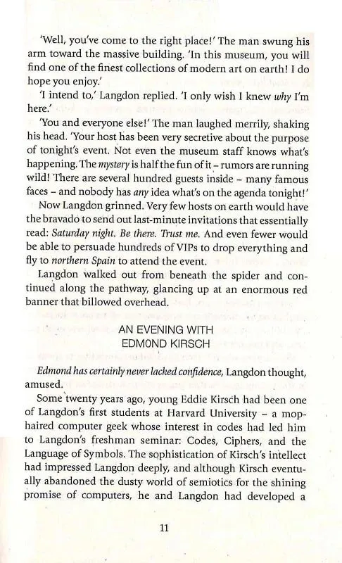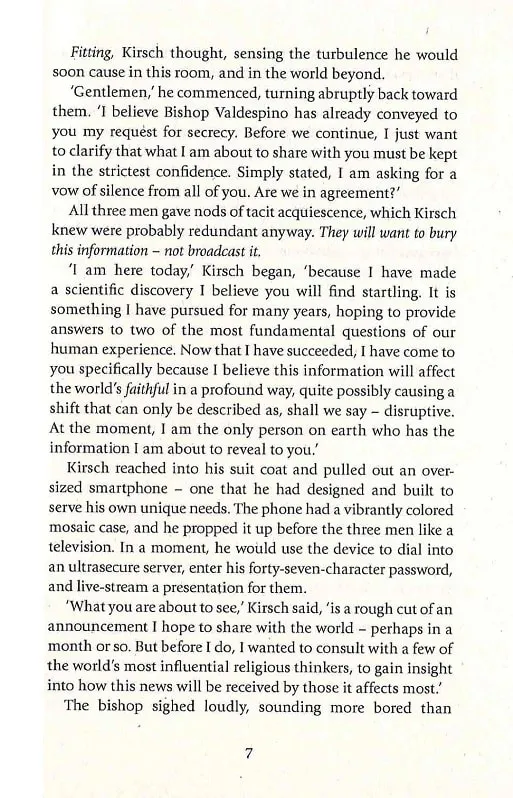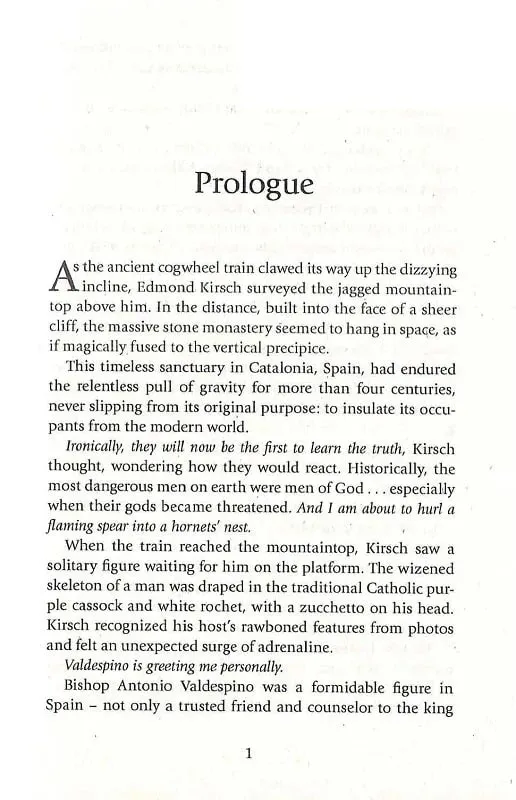 The global bestseller and latest Robert Langdon novel from the author of The Da Vinci Code.Robert Langdon, Harvard professor of symbology and religious iconology, arrives at the Guggenheim Museum Bilbao to attend the unveiling of an astonishing scientific breakthrough. The evening’s host is billionaire Edmond Kirsch, a futurist whose dazzling high-tech inventions and audacious predictions have made him a controversial figure around the world.But Langdon and several hundred guests are left reeling when the meticulously orchestrated evening is suddenly blown apart. There is a real danger that Kirsch’s precious discovery may be lost in the ensuing chaos. With his life under threat, Langdon is forced into a desperate bid to escape Bilbao, taking with him the museum’s director, Ambra Vidal. Together they flee to Barcelona on a perilous quest to locate a cryptic password that will unlock Kirsch’s secret.To evade a devious enemy who is one step ahead of them at every turn, Langdon and Vidal must navigate the labyrinthine passageways of extreme religion and hidden history. On a trail marked only by enigmatic symbols and elusive modern art, Langdon and Vidal will come face-to-face with a breathtaking truth that has remained buried – until now.