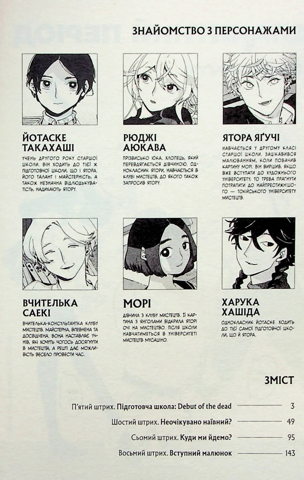 Перед хлопцем стоїть непросте завдання — підготуватися до вступних іспитів у найпрестижніший мистецький університет Японії, де викладають найвибагливіші майстри. У Ятори немає багаторічного досвіду чи природної геніальності, але є завзяття, цілеспрямованість і бажання перевершити самого себе.