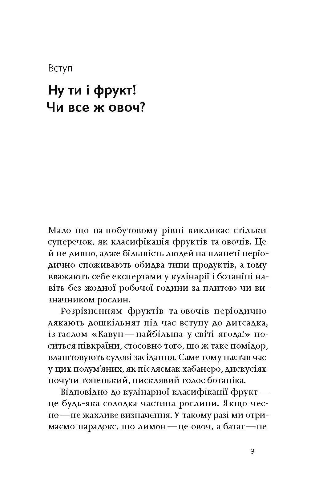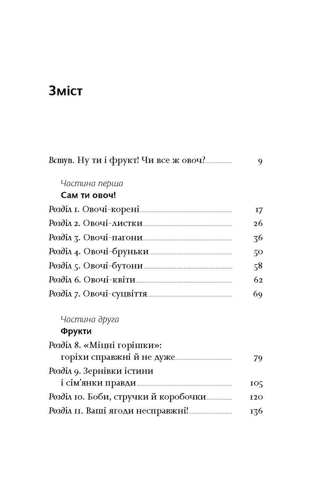 Ви дізнаєтесь, як відрізнити овоч від фрукта, чому гречка — це горішок, а кавун — ягода. Автор розповість, хто намагався лікувати огірками укуси скорпіонів, які здібності приписували салаті, звідки прийшов буряк і як правильно готувати каштани, щоб не перетворити кухню на руїни.