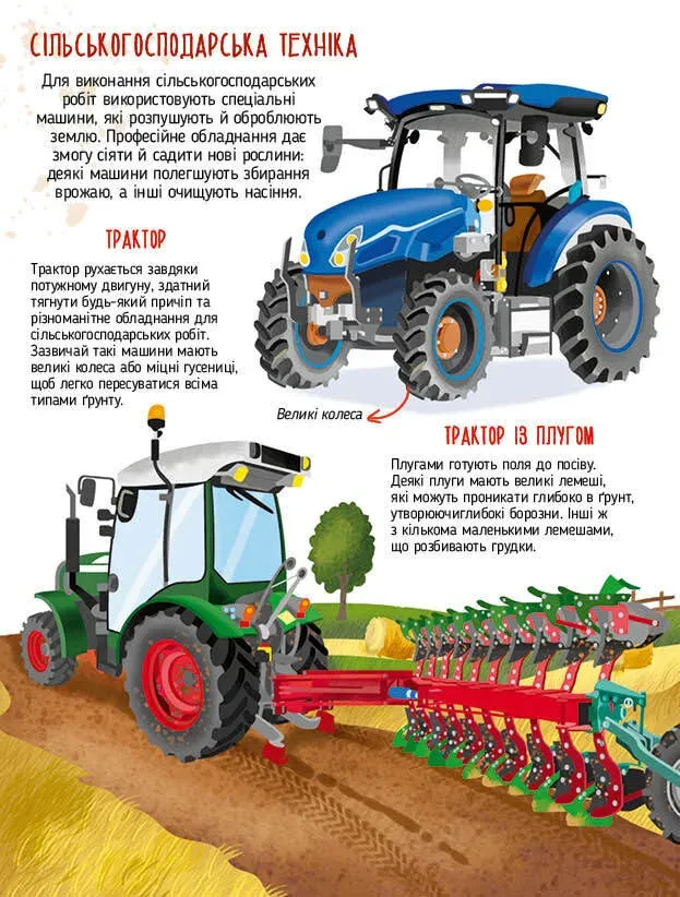 Ця захоплива книжка стане справжньою знахідкою для маленьких дослідників, які прагнуть дізнатися більше про дивовижні машини. Вона відкриє перед ними світ тракторів і комбайнів, екскаваторів і бульдозерів, потужних кранів і грейдерів, рятувальних автомобілів і навіть гігантських бурових установок, що прокладають тунелі. Окрім цього, діти зможуть познайомитися з величезними кораблями та іншими транспортними засобами-рекордсменами.