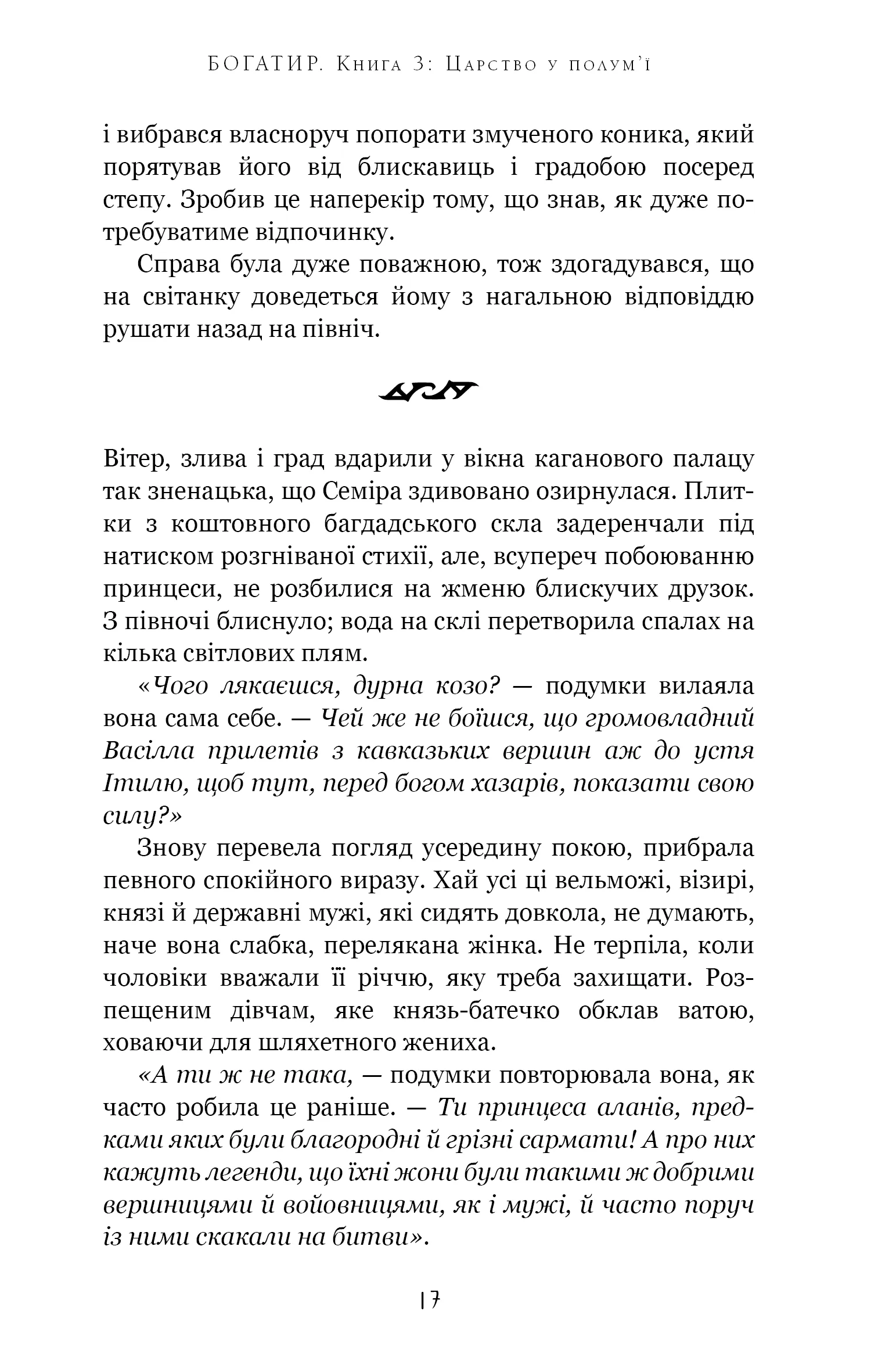 Це епічна історія, що поєднує реальні історичні події з елементами міфології та фентезі. Хазарське царство, яке панувало на сході Європи, є важливим геополітичним елементом, а вторгнення Святослава Ігоревича й боротьба з могутніми сусідами дозволяють поєднати реальність з казковими мотивами.