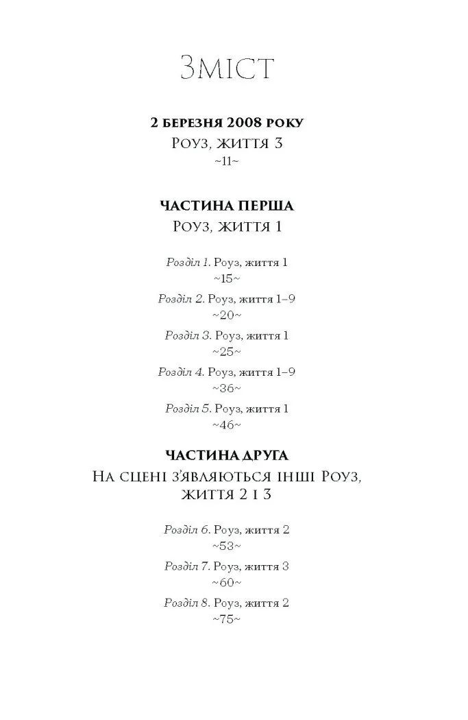 Роуз підходить до цих складних питань із властивою їй науковою точністю. Авторка Донна Фрейтас дарує своїй героїні можливість прожити дев’ять різних життів, щоб дослідити всі можливі шляхи. У деяких із них Роуз вирішує народити доньку, в інших — обирає зовсім інший напрямок. Через плетиво виборів і наслідків перед нами постає багатогранний портрет Роуз — як дочки, матері, науковиці, подруги, дружини та коханої.