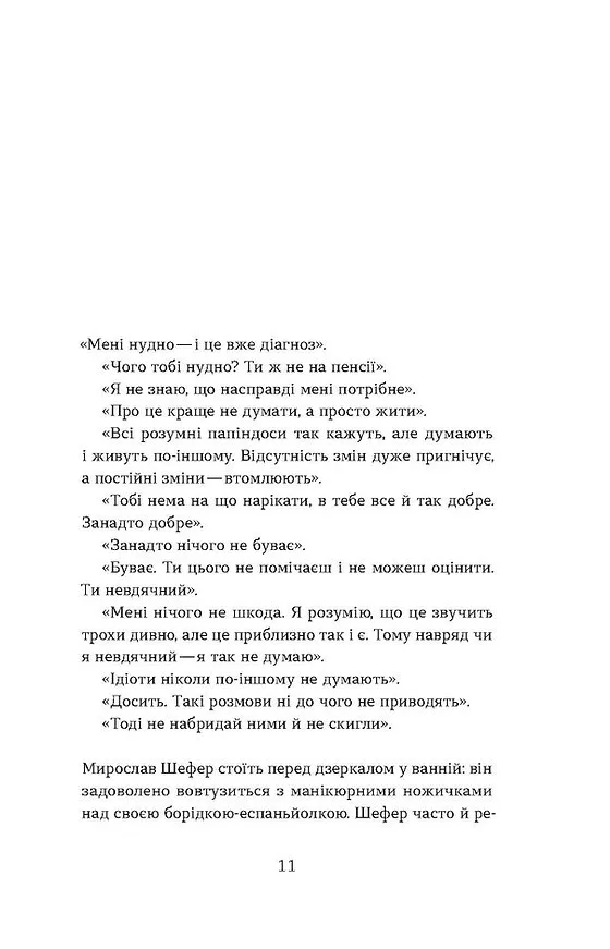 Криза середнього віку, безмежна самотність, страх близькості, владна мати, марний пошук свого справжнього призначення та справжнього кохання — усе це поволі руйнує Мирослава. І коли він зустрічає ту саму, то чи зможе бути з нею, чи перетворить і її на чергову п’єсу?