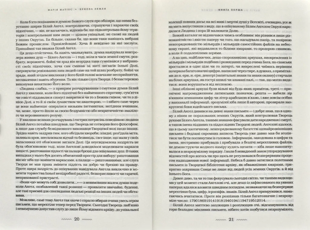 Довгоочікуваний новий роман провідної української письменниці Марії Матіос «Букова земля» — це пронизлива, глибока і зухвала сага завдовжки у 225 років, пропущена через перехресні історії п'яти родин різного суспільного рівня і статусу, а також історичних персонажів, так чи інакше пов'язаних з Буковиною. Землероби, скотарі, воїни, посли і міністри постають повноправними творцями не лише приватної, а й загальноєвропейської історії. Недаремно авторка означила жанр свого твору як роман-панорама. Географія його подій простягається від крихітного буковинського хутора Сірук — до Відня, Берліна, Бухареста, Москви і Берна. А обрамленням цього класичного роману виступає особливий сюжет зі Станиці Луганської літа 2014 року. І як завжди у книжках Марії Матіос, окремим персонажем є мова з її неповторною лексичною розкішшю і гуцульським чаром.