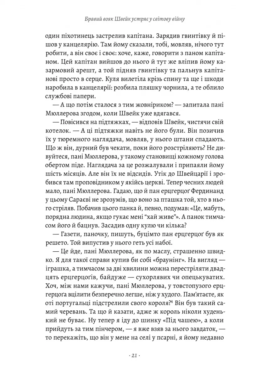 Роман «Пригоди бравого вояка Швейка», написаний видатним чеським письменником Ярославом Гашеком, займає чільне місце в золотому фонді світової літератури. Це майстерна суміш гумору, сатири та критики війни, яка зробила твір одним із найвідоміших у жанрі антивоєнної літератури. Головний герой, добродушний та оптимістичний Швейк, став символом людяності та незламності навіть у найскладніші часи.